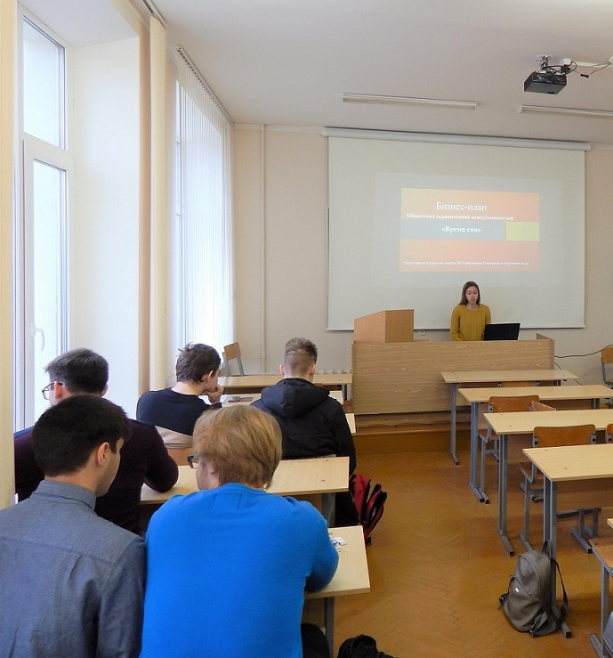 В рамках мероприятий Всемирной недели предпринимательства, организованных кафедрой экономики и управления, состоялся конкурс бизнес-проектов «Шаг к успеху», в котором приняли участие студенты экономического факультета и факультета математики и технологий программирования. На конкурс были представлены всесторонние проекты: от оказания услуг физическим и юридическим лицам до производства экологически чистой и безотходной продукции. Среди них проекты «Маленький гений», «CityTalks», «Bon appetite от Крохи», «СhocoBar», «Green wall», «Зорачка».