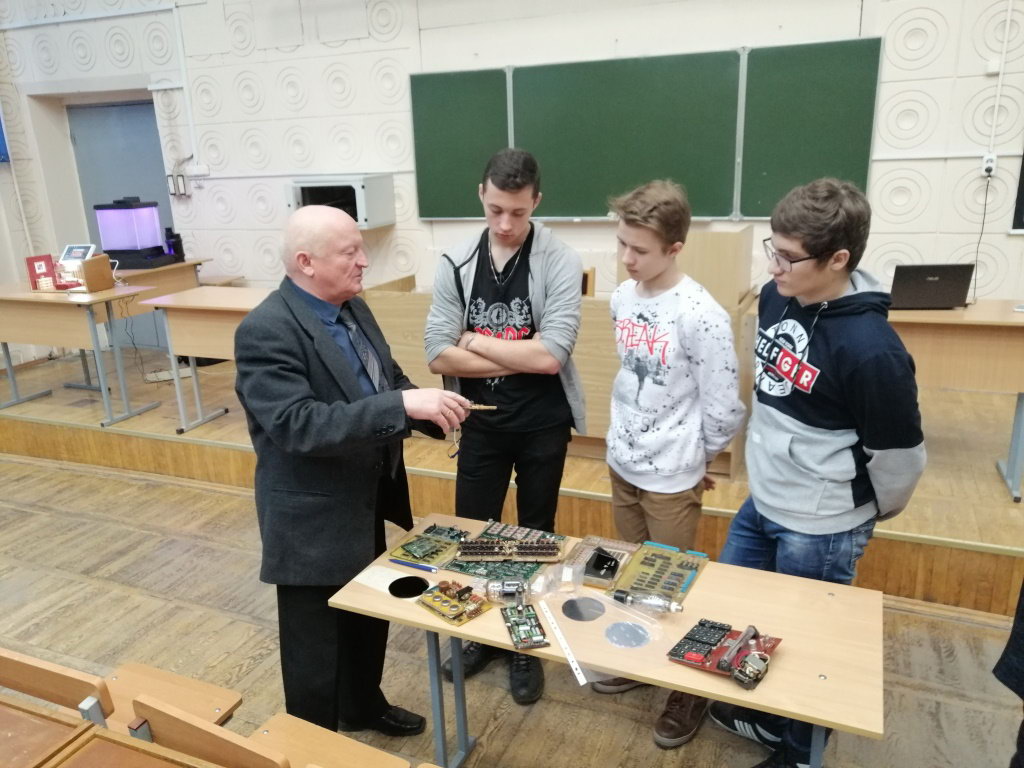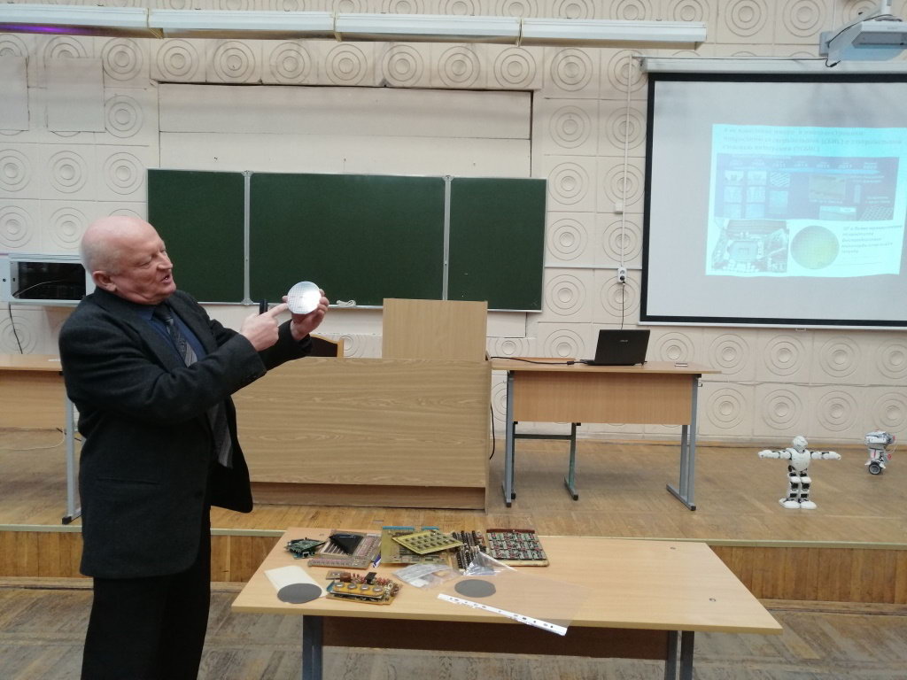 Лектор познакомил учащихся и педагогов с этапами развития и современными достижениями в области разработки электронных компонент, рассказал о достижениях нашего университета в этом актуальном направлении научных исследований.