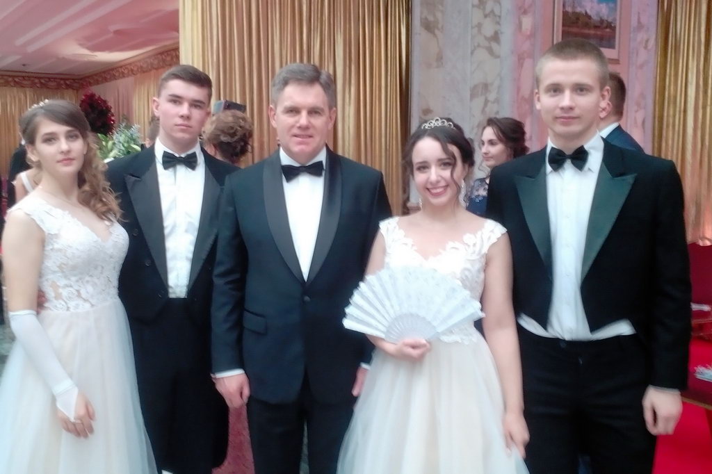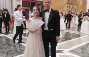 Четырем студентам ГГУ имени Ф. Скорины также выпала честь побывать на таком масштабном и грандиозном празднике. Наш вуз на Венском балу представили председатель студсовета, студент факультета математики и технологий программирования Дмитрий Дрейзин, студент и магистрант биологического факультета Мария Юркова и Дария Синкевич, студент факультета физики и информационных технологий Андрей Садловский. Возглавил делегацию проректор по воспитательной работе Юрий Никитюк.