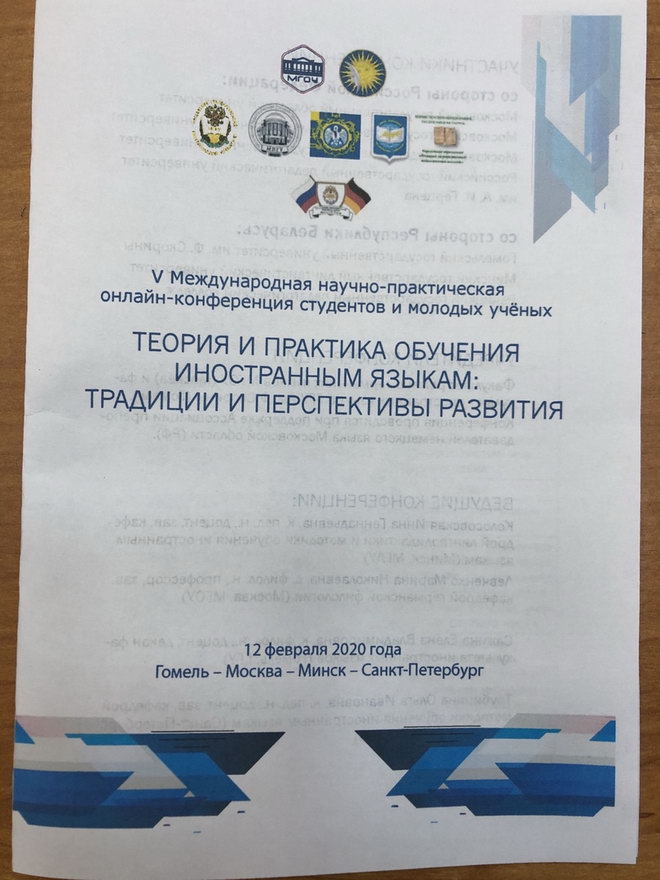12 февраля на факультете иностранных языков прошла ставшая уже традиционной V Международная научно-практическая онлайн-конференция студентов и молодых ученых «Теория и практика обучения иностранным языкам: традиции и перспективы развития», в которой приняли участие представители белорусско-российского научного тандема. Со стороны Российской Федерации молодые ученые представили такие вузы, как Московский государственный областной университет (учредитель конференции), Московский государственный лингвистический университет, Московский педагогический государственный университет, Российский государственный педагогический университет имени А.И. Герцена. Белорусская сторона была представлена студентами и магистрантами Гомельского государственного университета имени Ф. Скорины (учредитель конференции), Минского государственного лингвистического университета и Речицкого государственного педагогического колледжа.