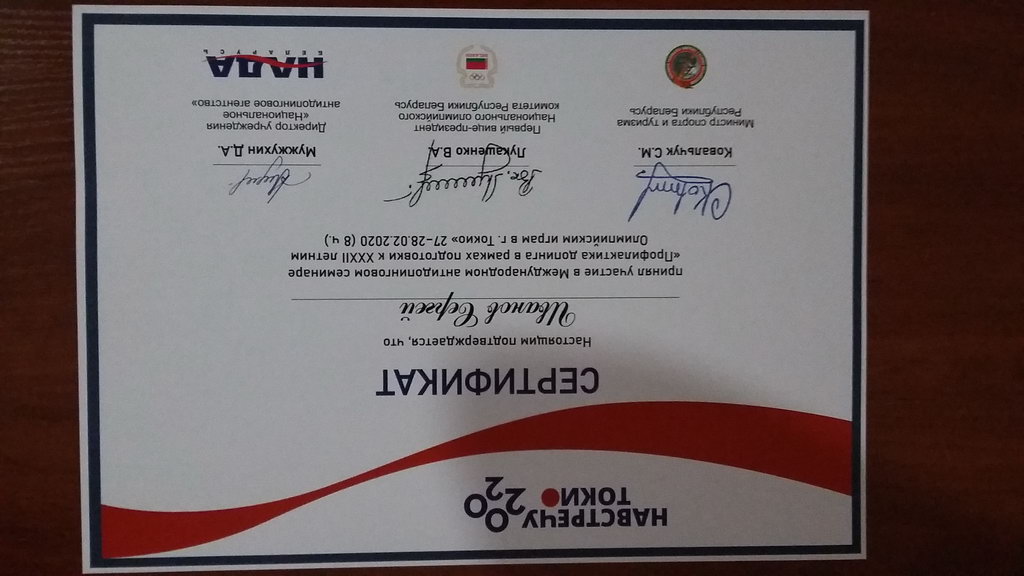 27-28 февраля 2020 г. в Зале олимпийской славы Национального олимпийского комитета прошел международный антидопинговый семинар «Профилактика допинга в рамках подготовки к ХХХII летним Олимпийским играм в г. Токио».