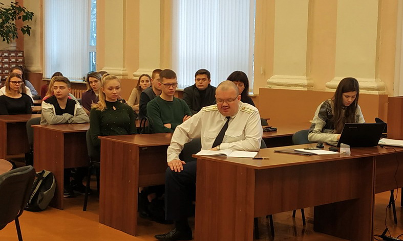 Студенты увидели все стадии судебного процесса, закрепили знания, полученные в курсе «Уголовный процесс». Тематика судебного заседания – ответственность за уклонение от уплаты алиментов. Сторону обвинения представлял заместитель прокурора г.Гомеля Гавриков А.И.