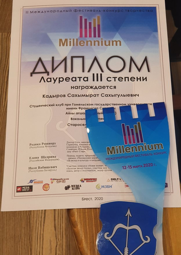 13 и 14 марта в Бресте проходил II Международный многожанровый фестиваль-конкурс творчества «Мillennium», на который были приглашены туркменские студенты танцевального коллектива «Ашхабад» студенческого клуба ГГУ имени Ф. Скорины. На сцене Дворца культуры профсоюзов г. Бреста в различных номинациях выступало более 100 участников из Беларуси, Молдавии, России, Польши, Украины. Наши студенты приняли участие в двух конкурсных номинациях из пяти: 13 марта – «Вокальное творчество. Эстрадная песня. Вокал», 14 марта – «Хореографическое творчество. Народный танец».