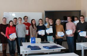Отдельно компанией были отмечены юные и активные IT-студенты 1 курса факультета физики и ИТ специальности «АСОИ»: Саутин Артем, Кустикова Софья и Мироненко Екатерина.