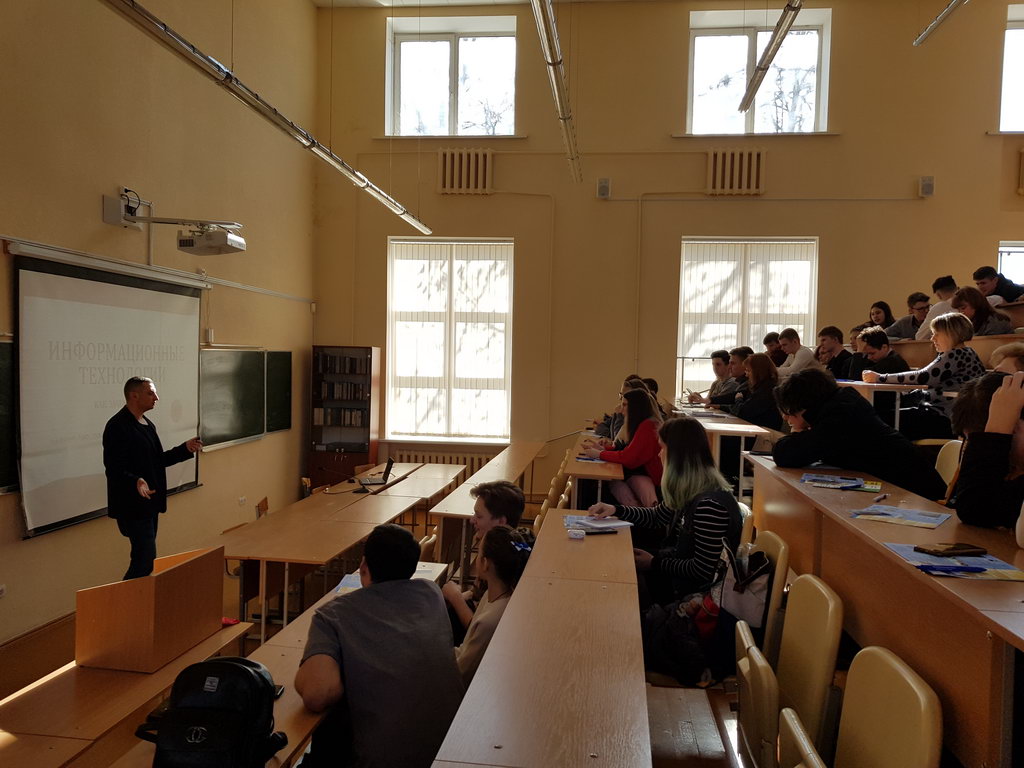 Заместитель декана факультета математики и технологий программирования, кандидат технических наук, доцент Андрей Клименко рассказал о факультете сегодня: специальностях, требованиях к студентам, особенностях обучения. В выступлении четко прослеживалась идея о том, что студенты должны быть мобильны и постоянно заниматься самообразованием. На факультете для этого имеются все возможности: циклы специальных дисциплин, дисциплины по выбору, факультативы, дополнительные курсы и тренинги ведущих ИТ-компаний. Также Андрей Валерьевич рассказал об особенностях приемной комиссии 2020 года.