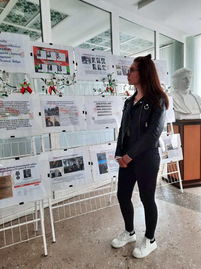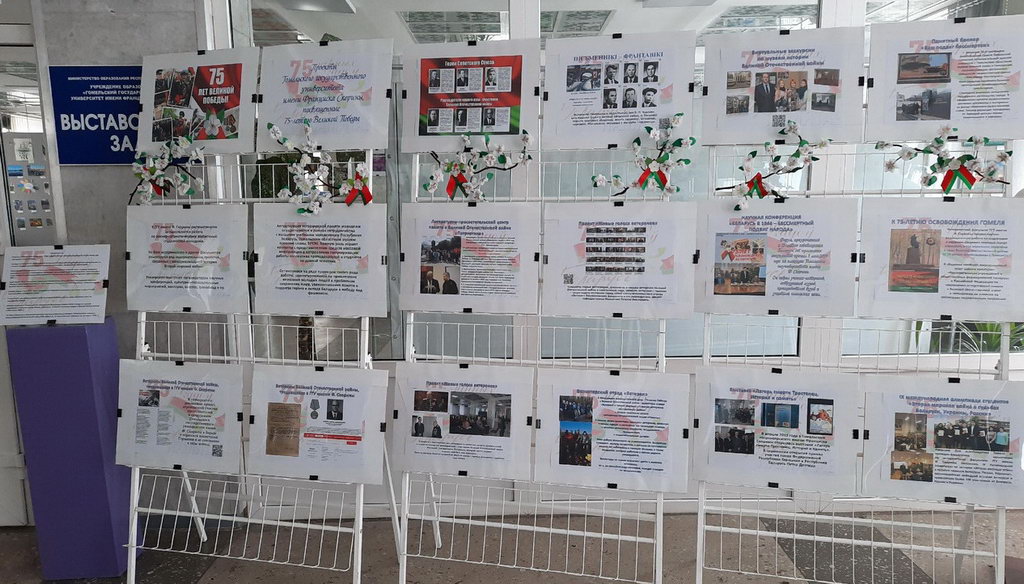В Гомельском государственном университете имени Франциска Скорины ведется постоянная работа по военно-патриотическому воспитанию молодого поколения. С результатами этой работы можно ознакомиться на открывшейся в ГГУ выставке проектов, посвященных 75-летию Победы в Великой Отечественной войне.