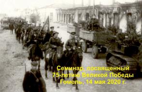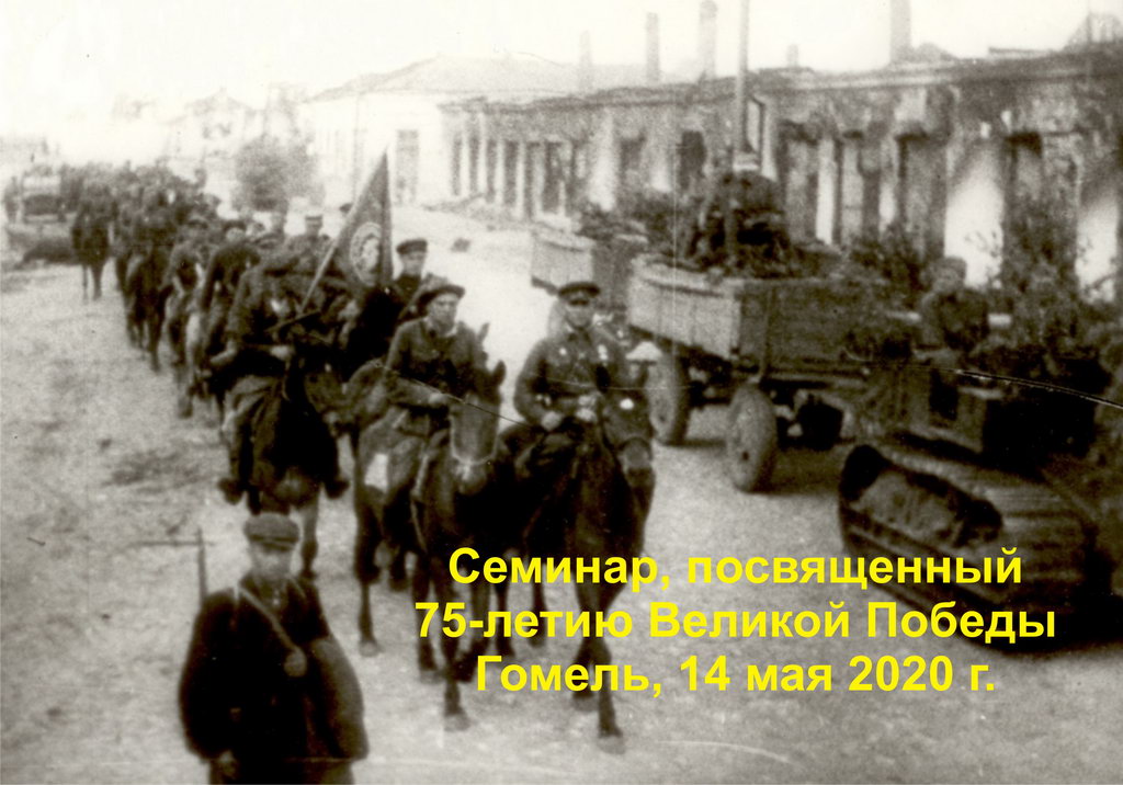14 мая преподаватели исторического факультета приняли участие в организации и проведении онлайн-семинара «Всемирно-историческое значение победы советского народа в Великой Отечественной войне». Мероприятие было заявлено правлением Гомельской городской оргструктуры РГОО «Белорусское общество «Знание». Координатором работы семинара стала заместитель председателя правления, заведующий кафедрой истории Беларуси УО «Гомельский государственный университет имени Ф. Скорины» Оксана Григорьевна Ященко. На семинар были приглашены руководители предприятий и организаций города и их заместители по кадрам и идеологической работе. Доклады, представленные преподавателями нашего университета, затрагивали значимые проблемы исторического осмысления военных событий («Германский нацизм: теория и реальность», доцент А.М. Бабков; «Трагедия Хатыни: уроки истории», доцент С.Ф. Веремеев) и важные вопросы современного видения формата военно-патриотического воспитания в Республике Беларусь (канд. экон. наук В.С. Селицкий). Рекомендации, высказанные докладчиками, несомненно, полезны для осуществления деятельности по вовлечению молодежи в процессы актуализации и сохранения исторической памяти.