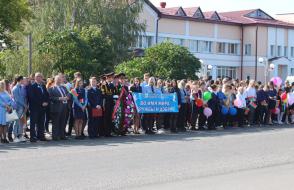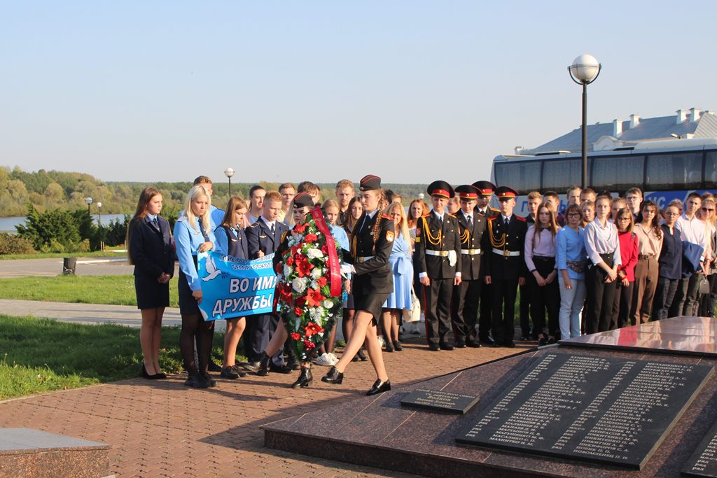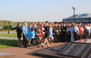 Марш Мира начался с посещения Комаринской средней школы, где на торжественной линейке, посвященной 77-летию освобождения Комарина от немецко-фашистских захватчиков, Тимофей Иванович Глушаков передал флаг созданному в школе отряду юных миротворцев. Затем делегация присоединилась к торжественному митингу у памятника в честь воинов-освободителей.