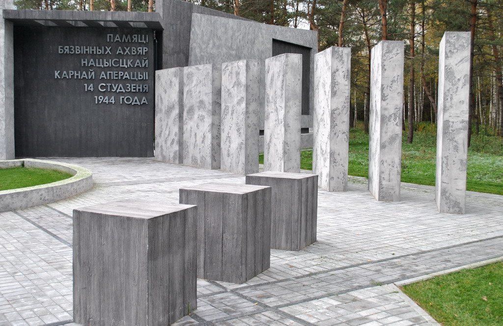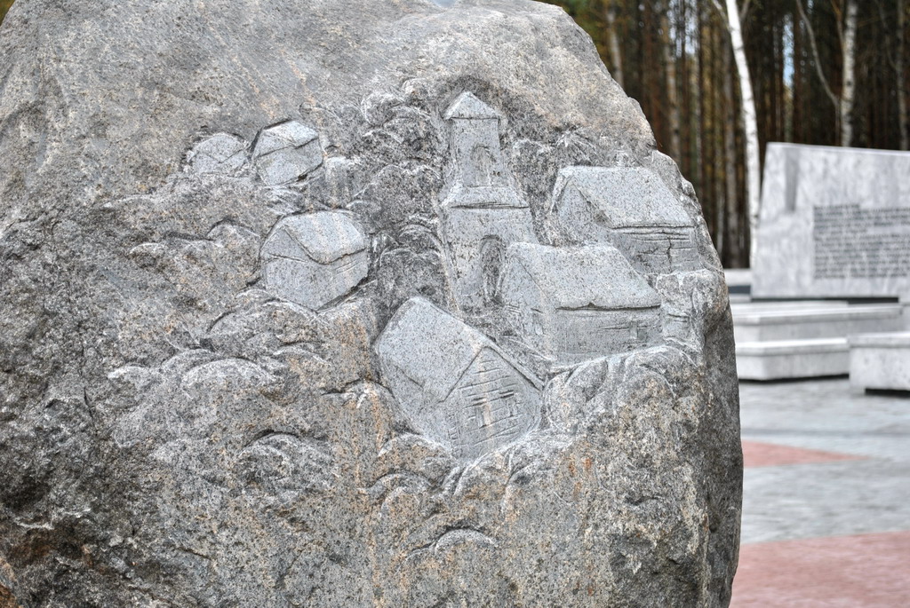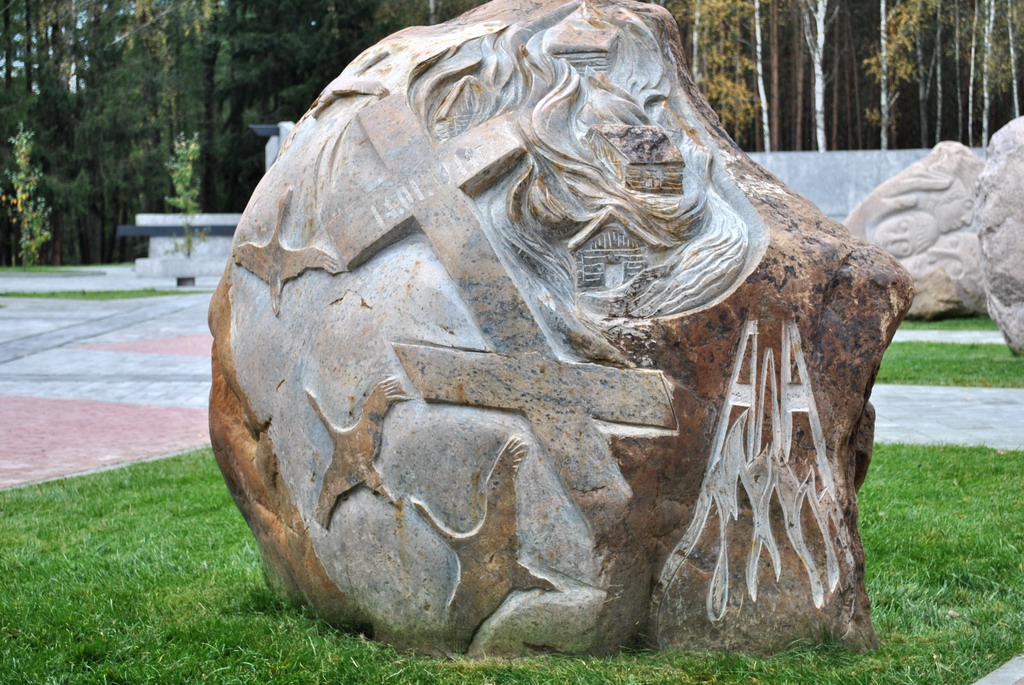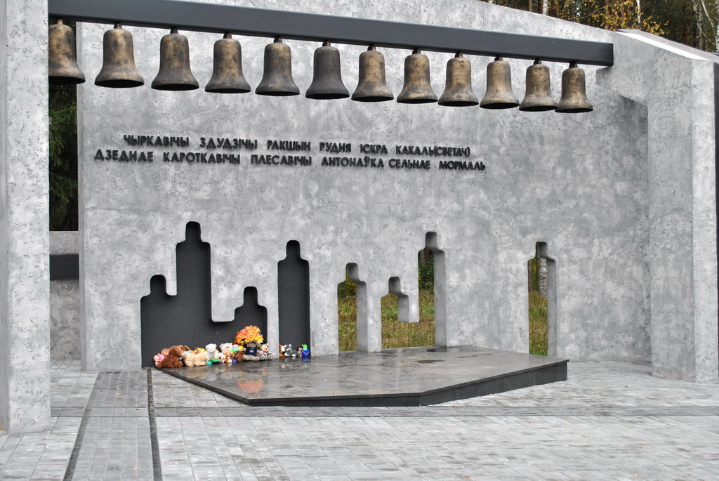 Братская могила, холодный камень, символические очертания стоявших здесь когда-то домов, звонница, обелиски с силуэтами людей, стела – все говорит о случившейся здесь трагедии.