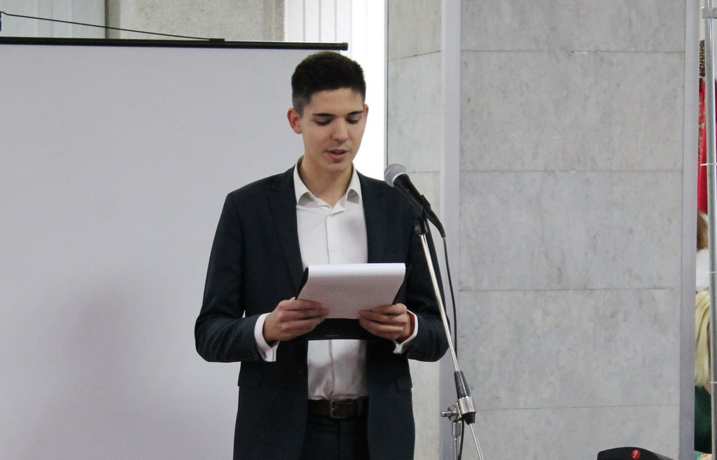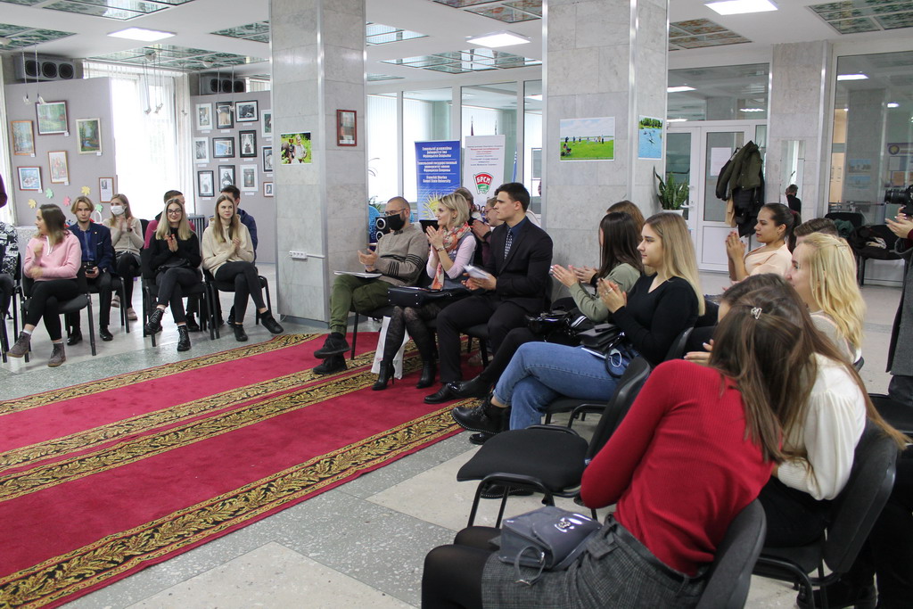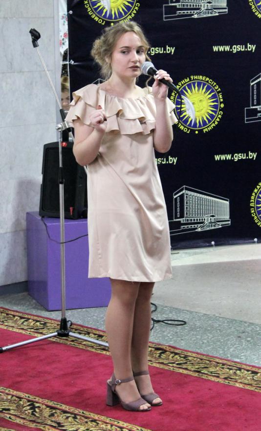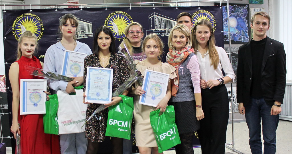21 октября в выставочном зале ГГУ прошел отборочный этап республиканского конкурса ОО «БРСМ» «Студент года». За почетное звание в этот раз сражались 4 представительницы прекрасного пола: Анна Шевцова (экономический факультет), Кристина Осадчая (факультет иностранных языков), Анастасия Кузнецова (юридический факультет) и Елена Конанкова (биологический факультет). Программа включала в себя четыре конкурсных испытания: визитку, конкурс ораторского мастерства, интеллектуальный конкурс и творческий номер.