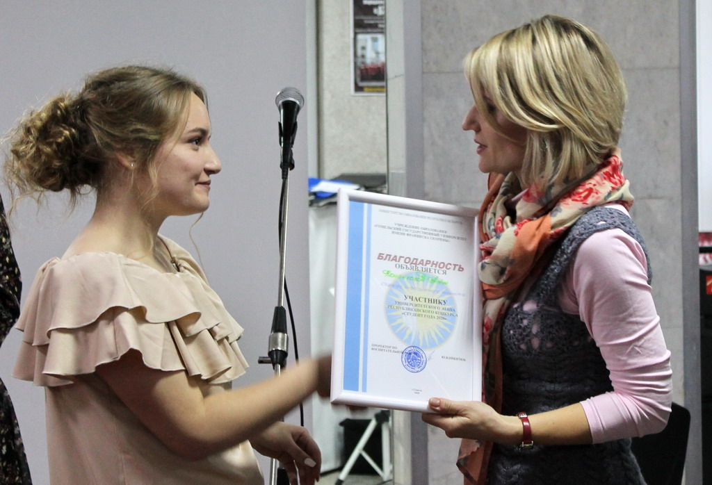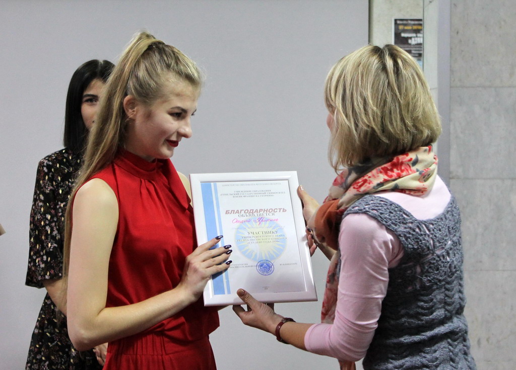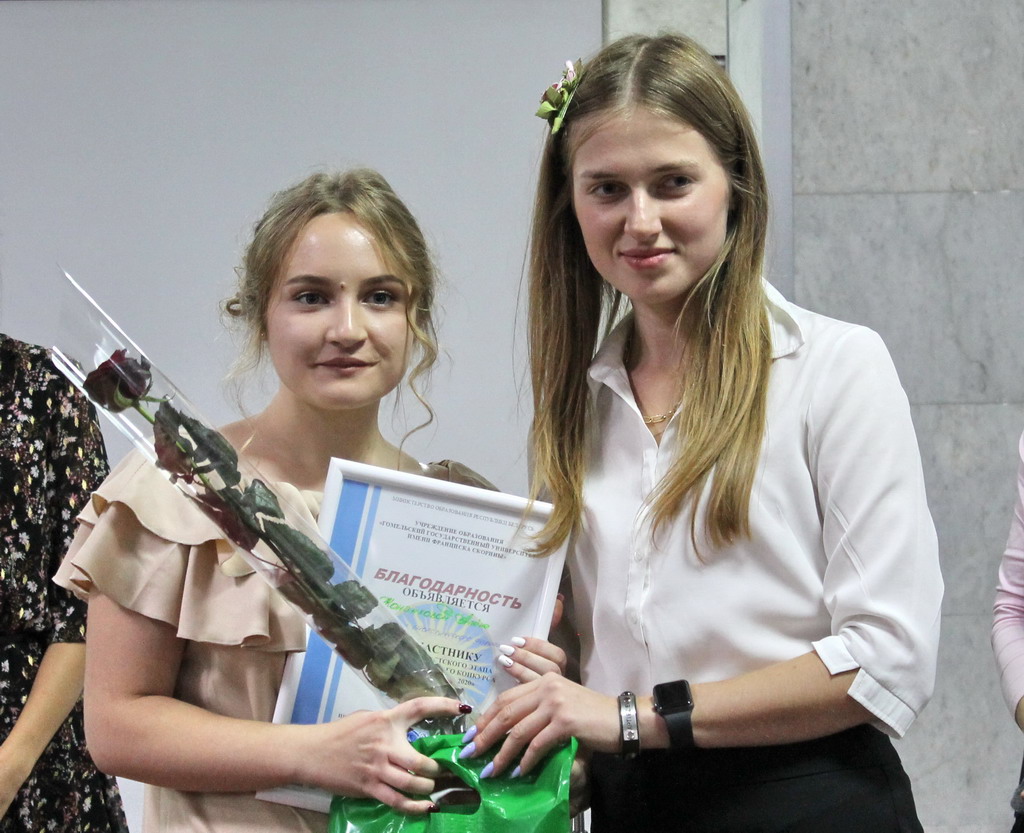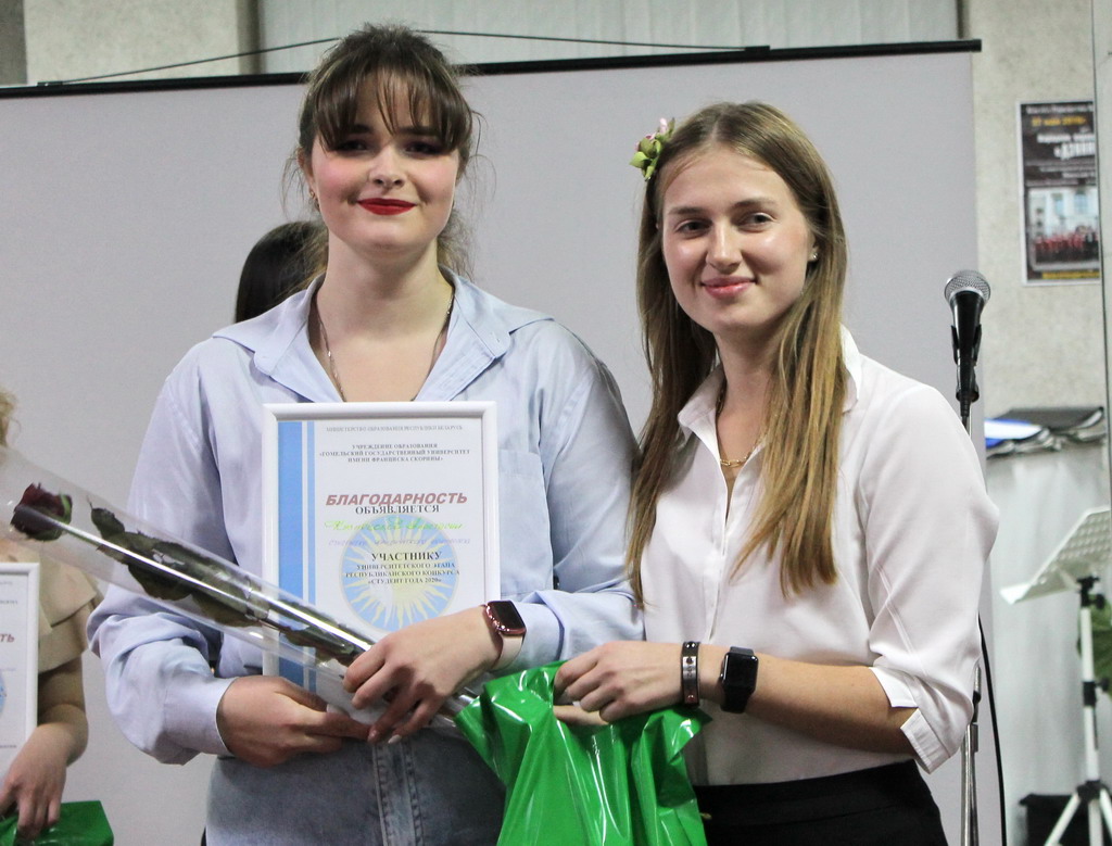 Борьба между девушками разыгралась нешуточная: члены жюри долго не могли определиться с победителем. Каждая участница в полной мере продемонстрировала свои таланты. Наибольшее количество баллов, а также звание «Студент года 2020» ГГУ имени Франциска Скорины получила студентка экономического факультета Анна Шевцова. Обаяние студентки юридического факультета Анастасии Кузнецовой произвело неизгладимое впечатление на членов жюри: второй секретарь областного комитета «БРСМ» Юлия Липовская предложила девушке подать заявку для участия в областном этапе конкурса. Таким образом, наш университет будут представлять сразу две участницы. Всем конкурсанткам были вручены подарки от ПО ОО «БРСМ».
