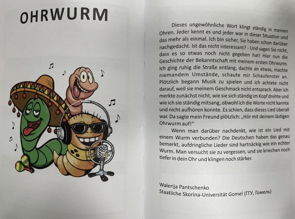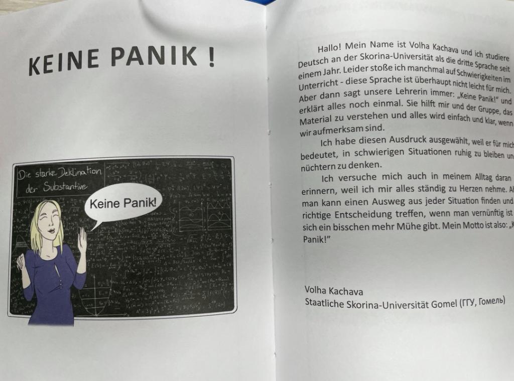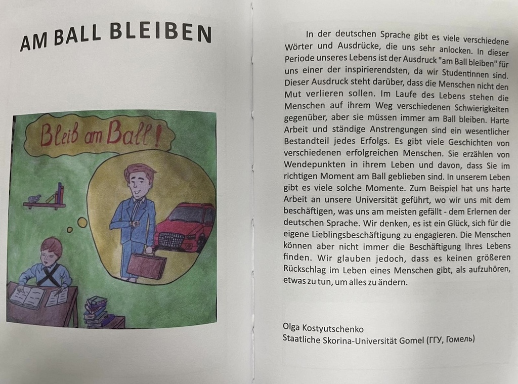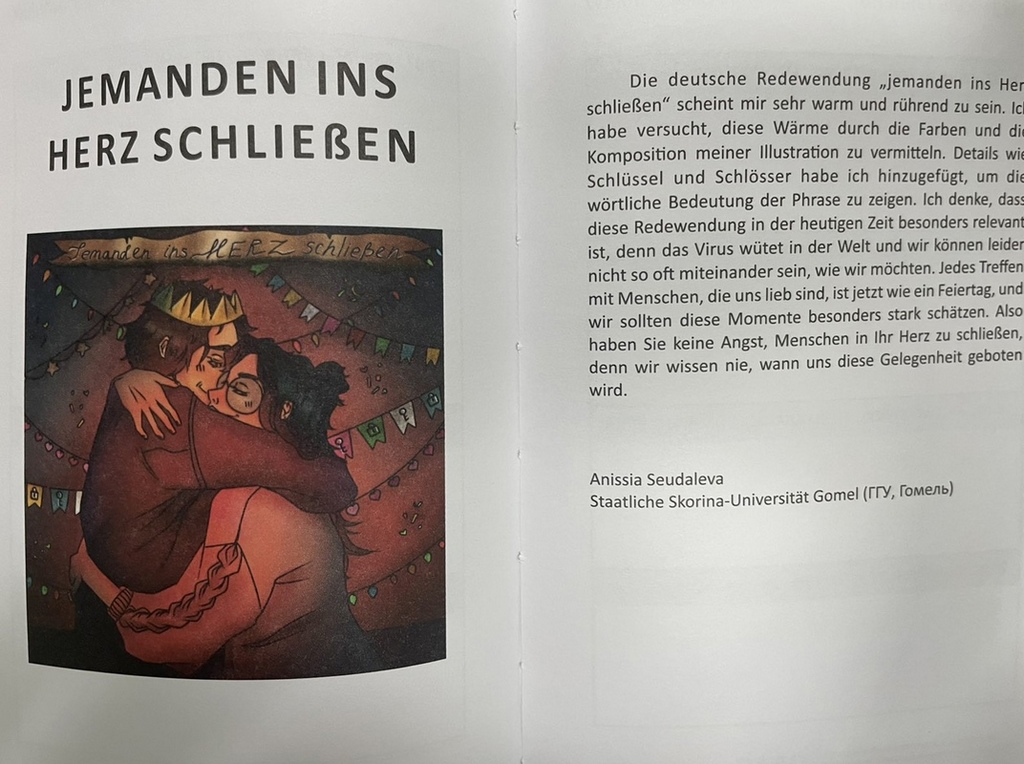 Германская служба академических обменов в Беларуси (DAAD) проводила осенью 2020 года Республиканский конкурс по созданию календаря на немецком языке. Это был уникальный проект, в рамках которого учащиеся всех белорусских вузов и колледжей имели возможность продемонстрировать не только уровень владения немецким языком, но и свои творческие способности, связанные с литературным воплощением замысла и созданием его образа в виде художественного рисунка. Участники проекта подбирали понравившееся им немецкое слово или выражение, иллюстрировали его суть с помощью рисунка и оснащали этот образ текстуальным описанием. Анализом художественной ценности работ занималась международная конкурсная комиссия.