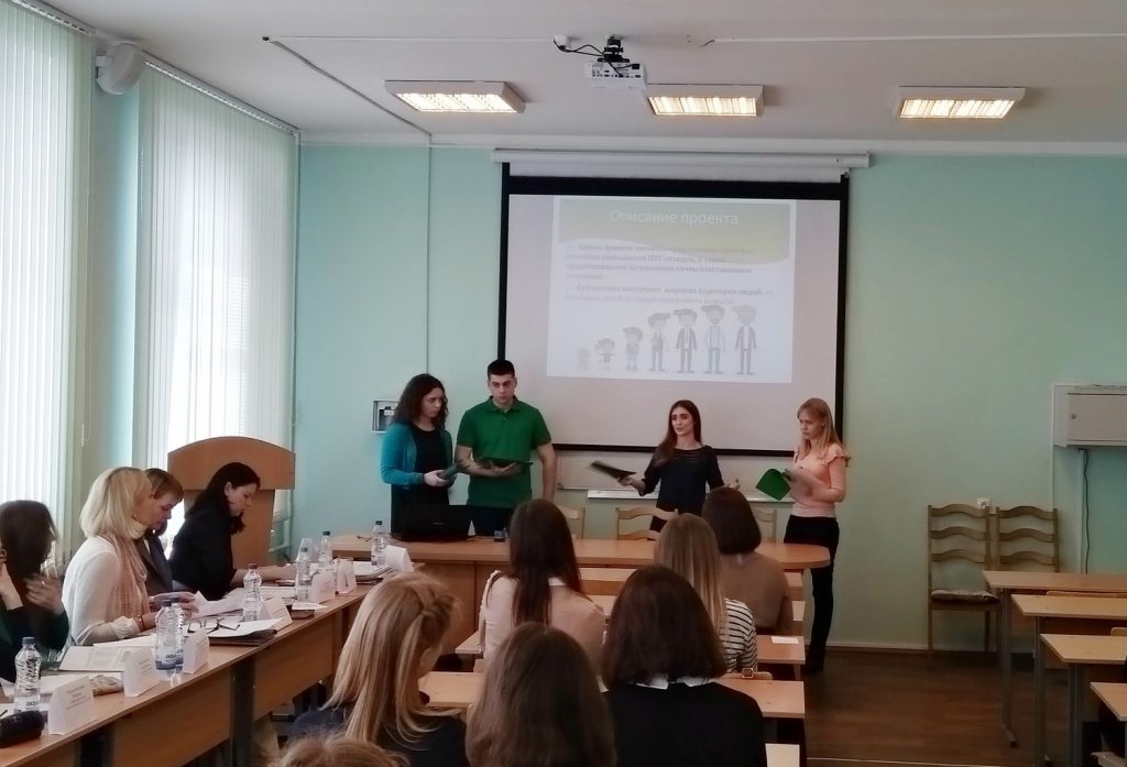 Увлекательно и креативно проявили себя студенты в конкурсе «Визитная карточка», представляя свои высшие учебные заведения и членов своих команд. В теоретическом туре, отвечая на тестовые задания, студенты показали свои знания по дисциплине «Экономика организации». Творческое задание в нынешнем году предусматривало разработку проекта в сфере социального предпринимательства. Утилизация пластиковых бутылок, трудоустройство инвалидов, организация квест-туров, популяризация английского языка, профориентационная деятельность — вот те идеи, которые были представлены участниками олимпиады. Все разноплановые и одновременно важные направления, реализация которых имеет в первую очередь социальную направленность и способствует решению проблем человека и общества.