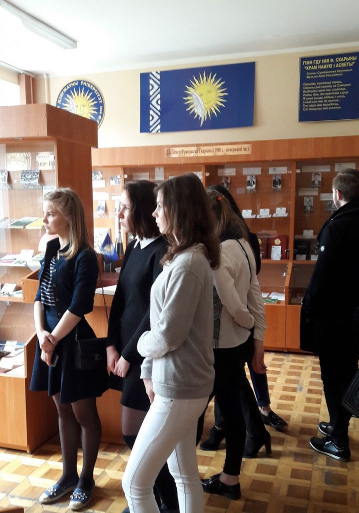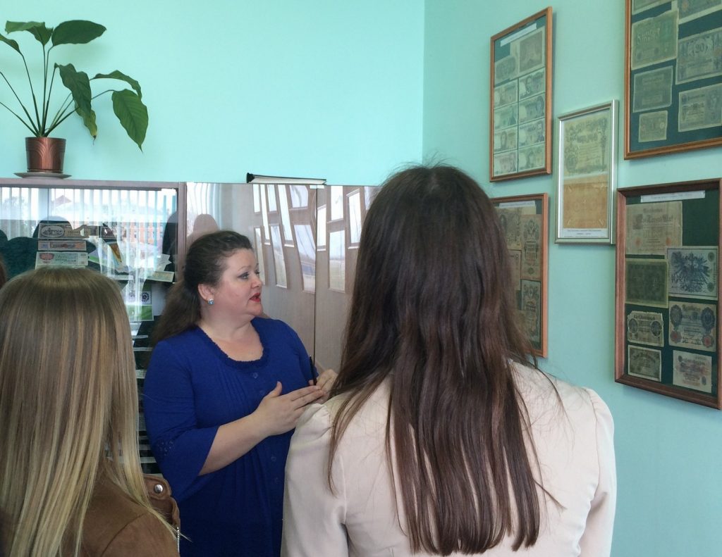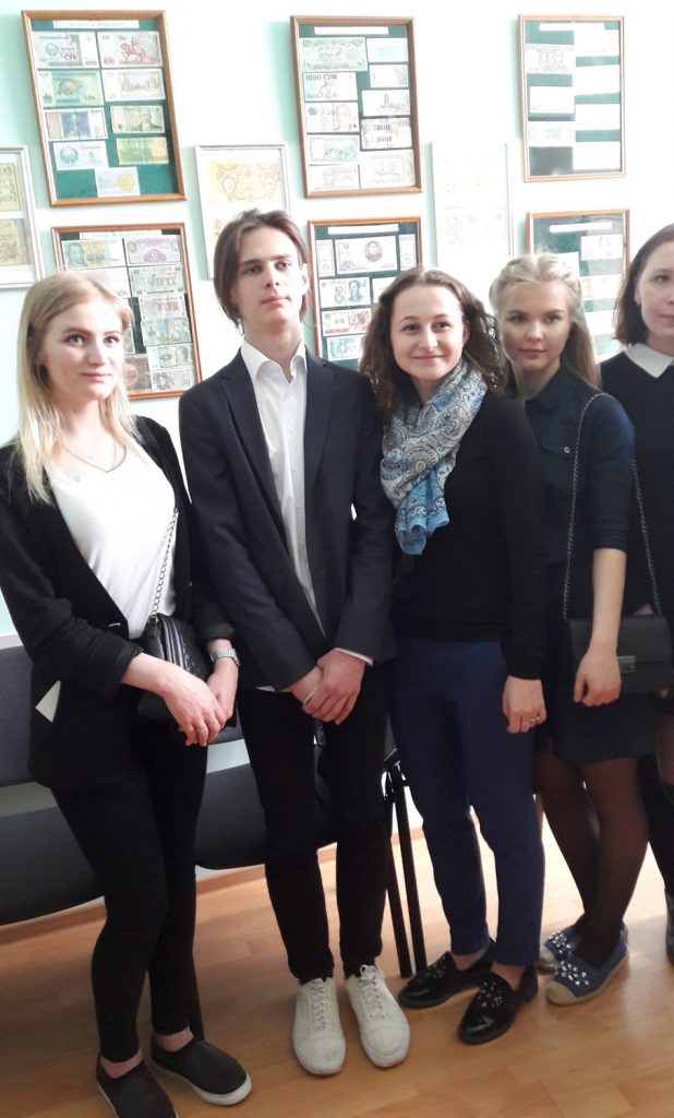 Исторический экскурс продолжился на экспозиции денег, организованной кафедрой финансов и кредита. Заведующая кафедрой Ольга Сергеевна Башлакова с большим энтузиазмом рассказала и показала участникам олимпиады разнообразные денежные знаки в виде монет и бумажных купюр, относящихся к разным эпохам и государствам. Особо обратила внимание на те денежные знаки, которые имели хождение на территории современной Беларуси, которая в разные исторические периоды относилась к ВКЛ, Речи Посполитой, Российской империи. Также посетители увидели фальшивые банкноты, денежные знаки, обеспеченные и необеспеченные золотым резервом, уничтоженные банкноты. Экспозиция вызвала большой интерес у всех присутствующих.