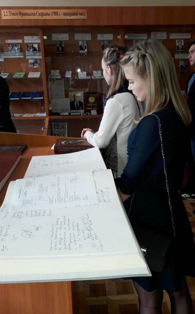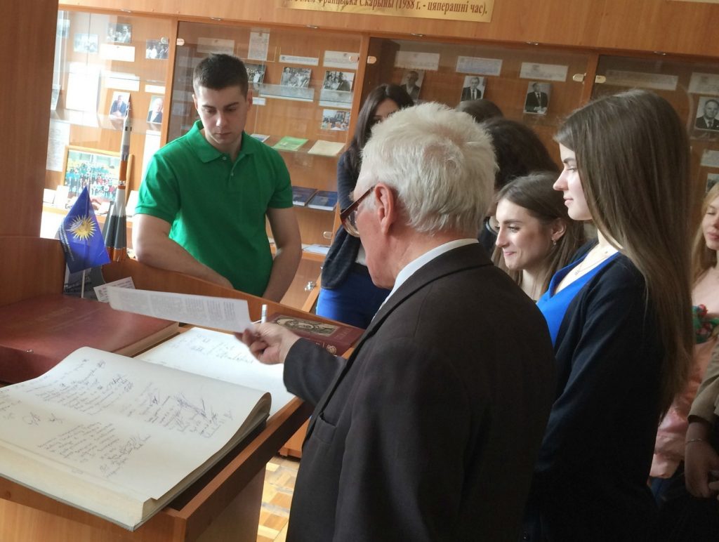 Также представители колледжей посетили музей университета и познакомились с его историей и современностью, о которых им рассказал Константин Сергеевич Усович, несменный хранитель всех исторических фактов, начиная с момента создания пединститута в 1924 году. Особое внимание Константин Сергеевич уделил сотрудникам и выпускникам экономического факультета, которыми по праву мы можем гордиться. Учащиеся и преподаватели колледжей оставили свои отзывы о музее в книге почетных гостей университета, оставшись навсегда в его истории.