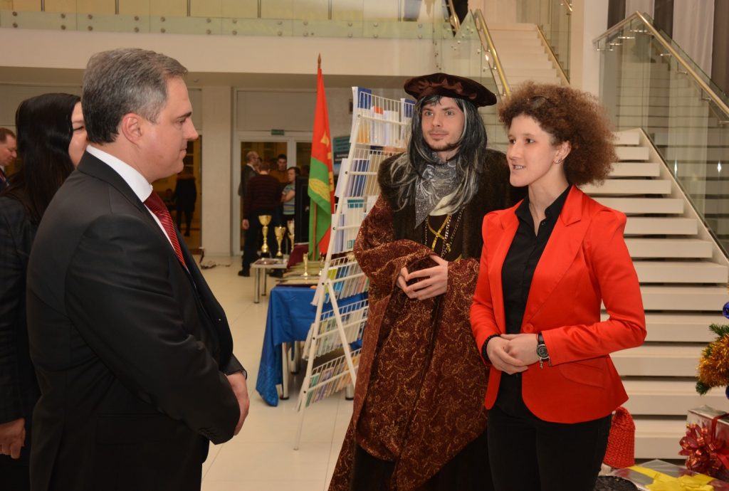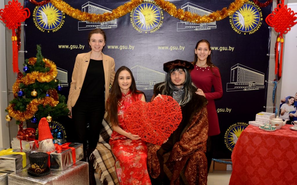 В красном зале ОКЦ развернулась интерактивная выставка учреждений высшего образования. Сотрудники отдела молодежных инициатив, информационно-аналитического отдела и актив студенческого совета ГГУ отразили в выставке нашего вуза самые яркие события уходящего года – открытие первого регионального института Конфуция в Республике Беларусь и республиканский форум «Скарына ў наш час». Также была представлена новогодняя фотозона, где гости фестиваля могли сделать на память праздничное фото.