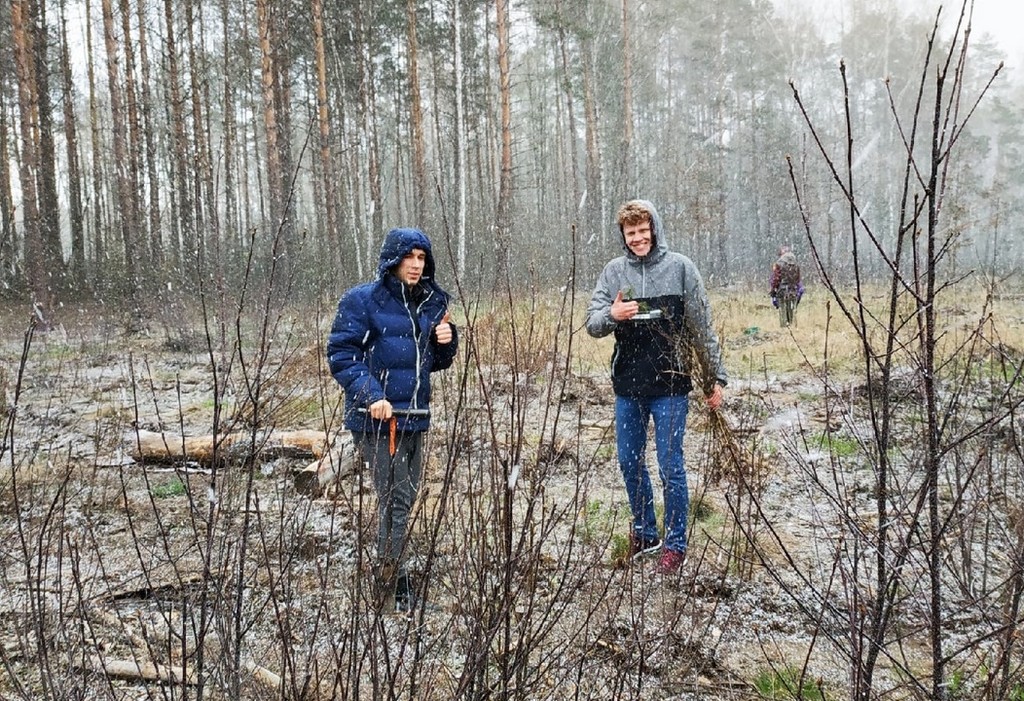 Несмотря на суровые погодные условия, волонтеры высадили саженцы сосны и березы рядом с деревней Волчья гора, услышав просьбу о помощи от местных жителей.