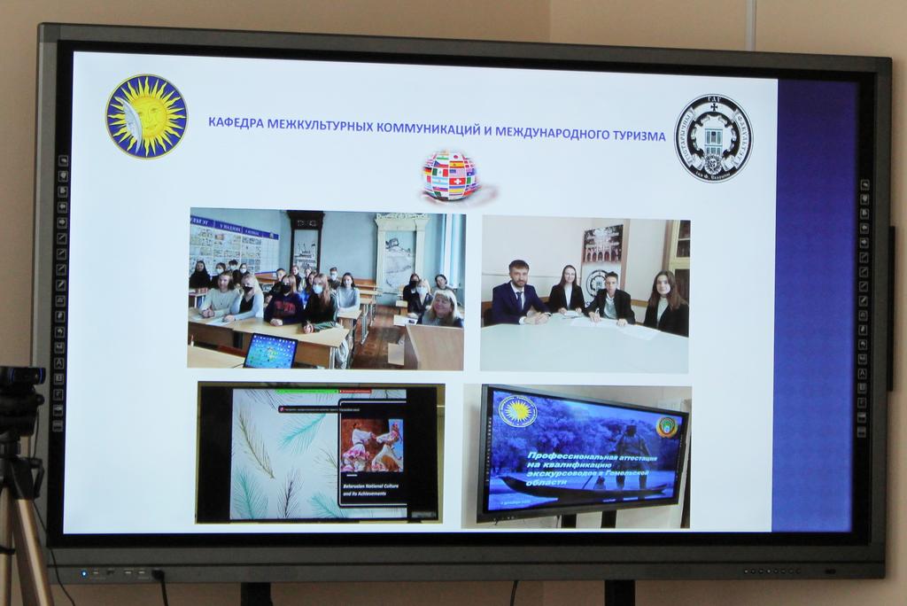 Заведующий кафедрой туризма Александр Зырянов, доктор географических наук, и преподаватели кафедры туризма внесли свои предложения по налаживанию сотрудничества между факультетами и кафедрами. Были намечены реальные перспективы совместного проведения онлайн-лекций и семинаров в контексте учебных планов и программ, совместные публикации студентов и преподавателей, участие в профильных конференциях и мероприятиях, прохождение практики студентами и совместные экскурсионные мероприятия в Беларуси и России.