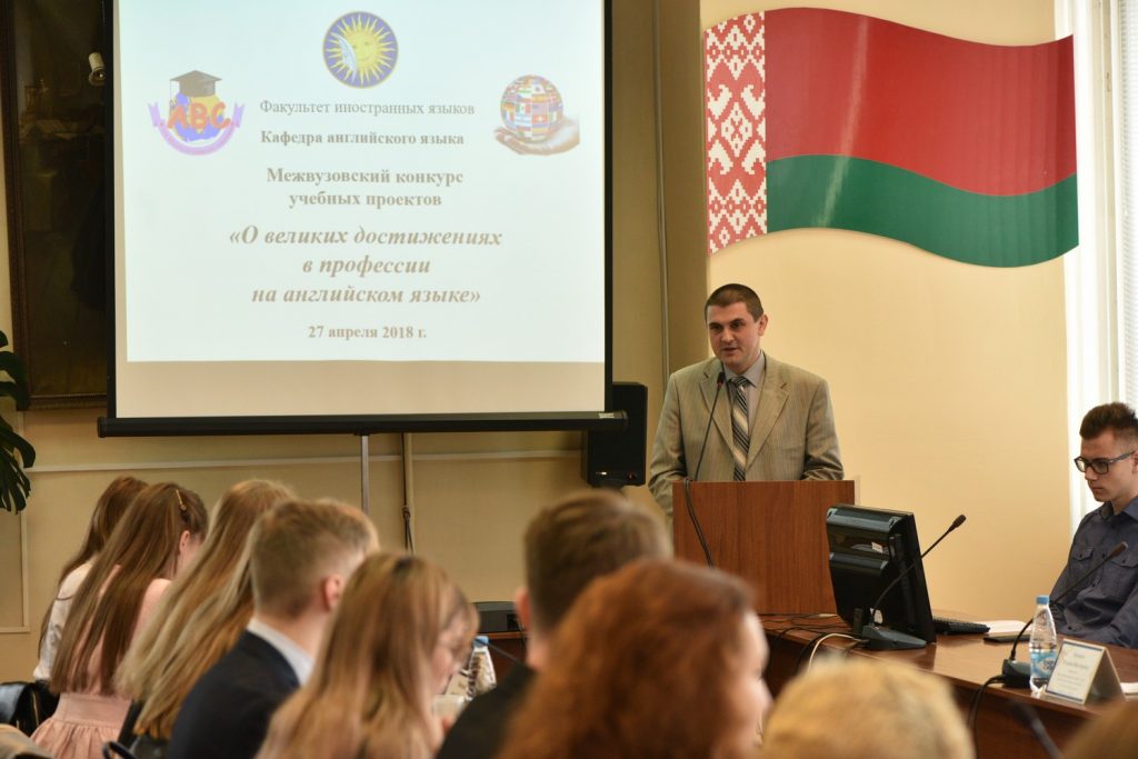 Кафедра английского языка факультета иностранных языков провела II Межвузовский конкурс учебных проектов «О великих достижениях в профессии на английском языке». Инициатива была активно поддержана всеми вузами г. Гомеля и Мозырским государственным университетом имени И.П. Шамякина. 12 конкурсантов различных специальностей представили проекты на английском языке по знаменитым персоналиям в истории, культуре и экономике, по таким современным тенденциям в сфере информационных технологий, как криптография и искусственный интеллект, были рассмотрены интересные темы в таких отраслях, как таможенное дело, теплоэнергетика, промышленная электроника и психиатрия.