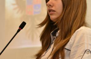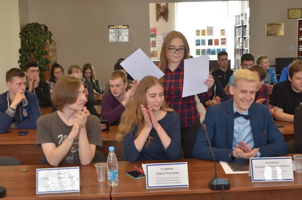 Пока члены жюри подводили итоги конкурса, участников ждала насыщенная информационная программа – видео-презентация по современным тенденциям ГГУ, представленная заместителем декана заочного факультета Тимуром Бородичем, видео-экскурсия по Мозырьскому государственному педагогическому университету, показанная конкурсантами из МГПУ, а также сообщения студентов 1 курса экономического факультета ГГУ имени Ф. Скорины: презентация по мировым брендам Елены Влащенковой, викторина по истории и культуре Великобритании, проведенная с конкурсантами Мариной Анисовой и Ольгой Баланденко.