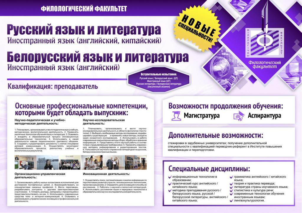 В этом году в Гомельском государственном университете имени Ф. Скорины открыты 3 новые специальности (на факультете физики и информационных технологий и филологическом факультете):