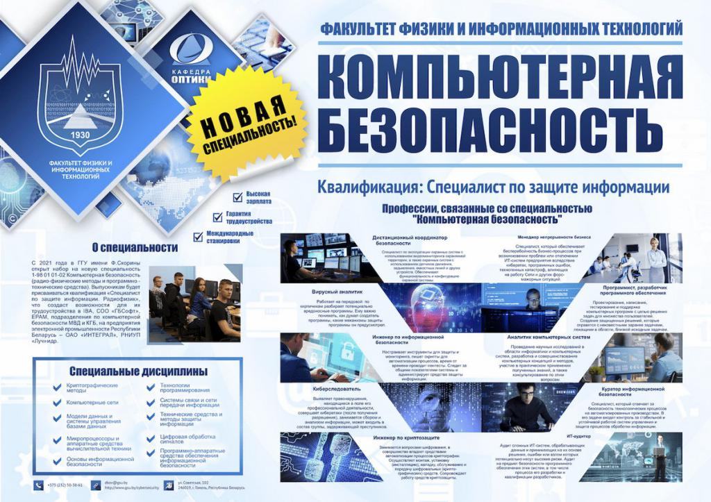 • 1-98 01 01-02 Компьютерная безопасность (радиофизические методы и программно-технические средства);