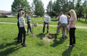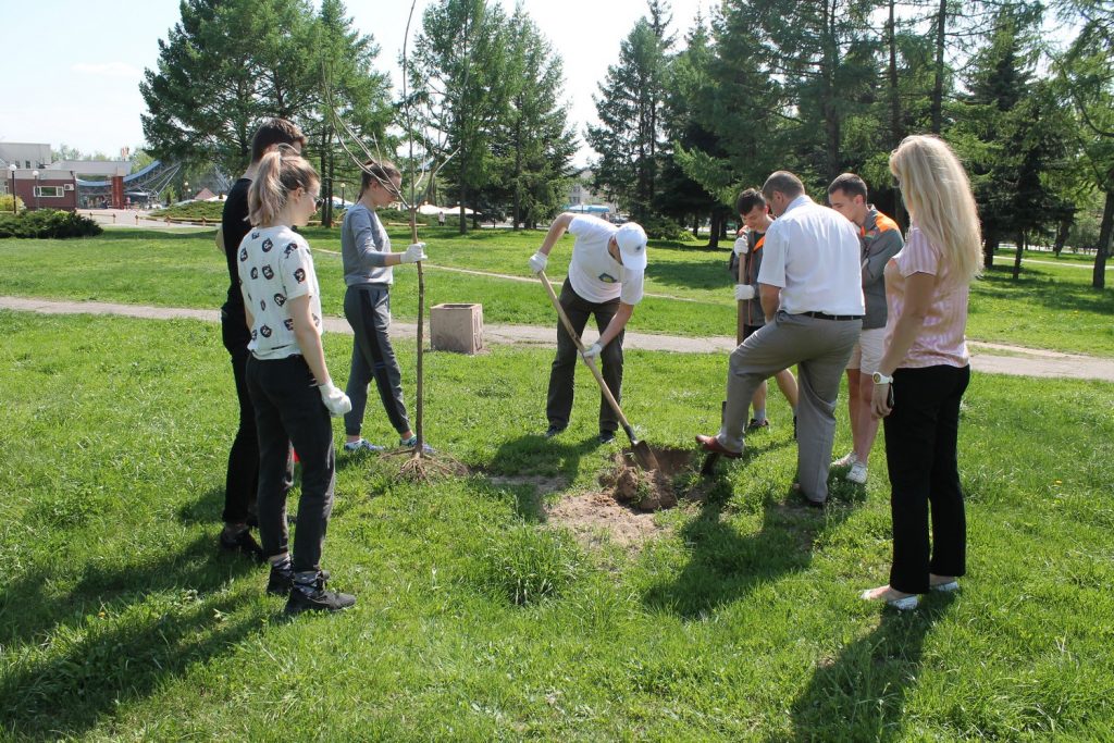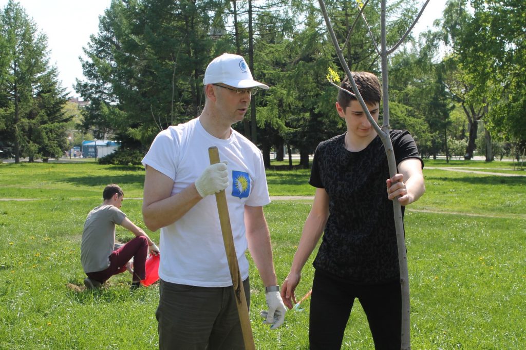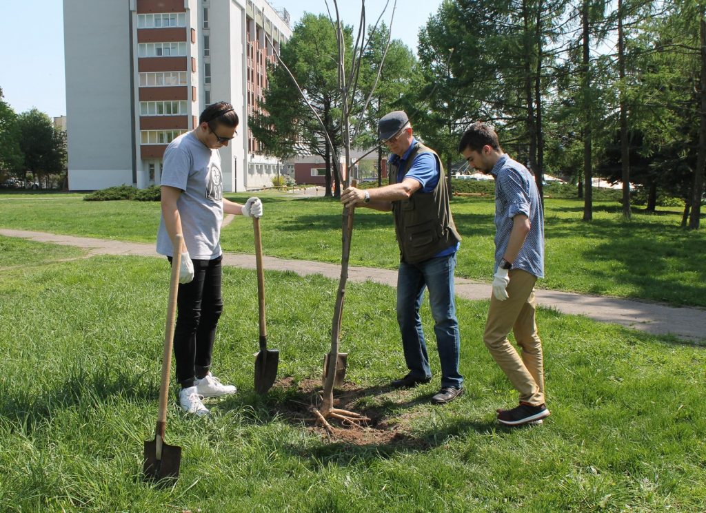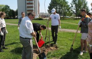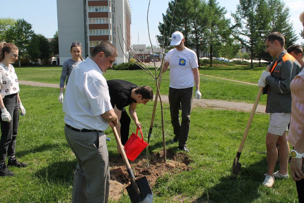 В рамках акции по озеленению города 3 мая студенты из экологического отряда «Флора» и сотрудники ГГУ имени Ф. Скорины во главе с ректором университета, депутатом Гомельского областного Совета депутатов 28 созыва Сергеем Анатольевичем Хахомовым приняли участие в посадке деревьев возле гостиницы «Турист».