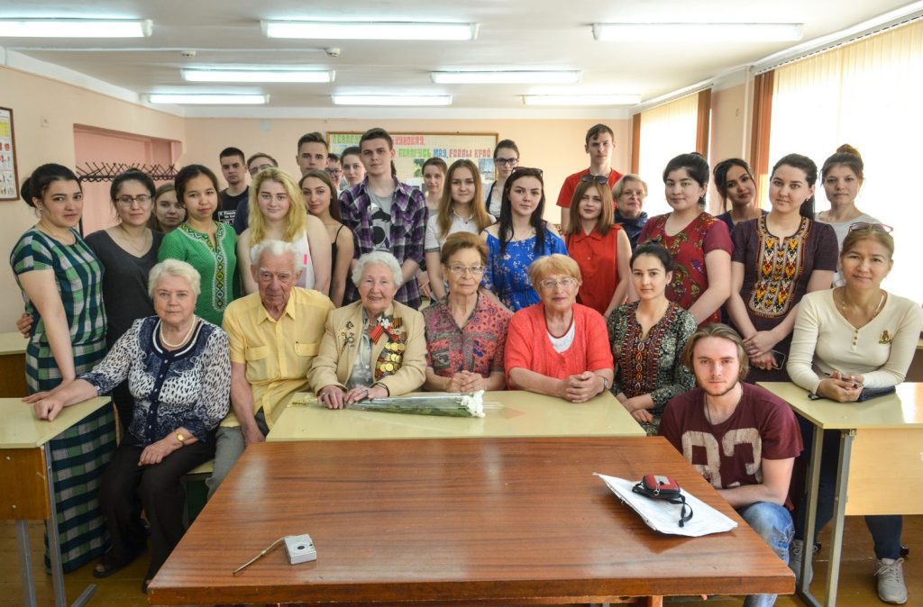Все рассказанное воспринималось с волнением. Студенты поблагодарили выступающих, поздравили их с Днём Победы и вручили цветы.