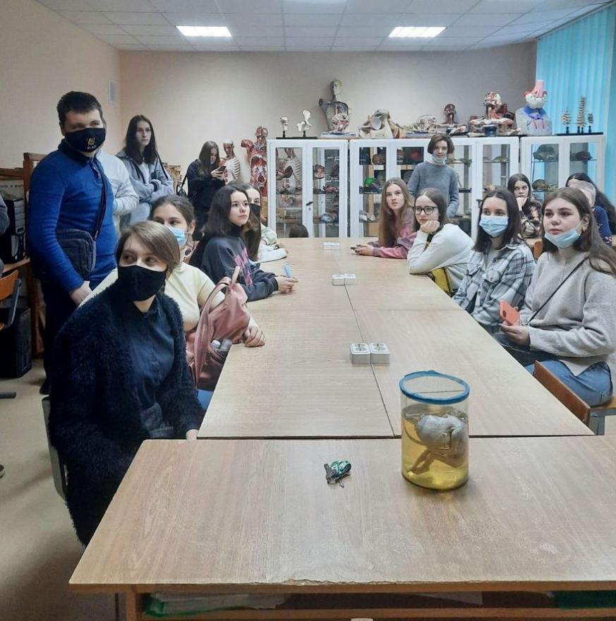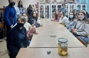 Елена Валерьевна Воробьева провела экскурсию по лабораториям кафедры химии, ознакомив учащихся с материально-технической базой кафедры. Особый интерес учащихся вызвали продемонстрированные им занимательные опыты. Ирина Ильинична Концевая представила ученикам лабораторию микробиологии и вирусологии, при этом уделив внимание научным исследованиям, которые проводятся на кафедре ботаники и физиологии растений преподавателями и студентами. Сергей Александрович Зятьков ознакомил учащихся с организацией лаборатории генетики, биотехнологии и молекулярной биологии, и рассказал об особенностях молекулярно-генетического анализа, который приобрел особенную актуальность во время пандемии. Александр Александрович Сурков провел ознакомительную экскурсию по лабораториям кафедры зоологии, физиологии и генетики. Николай Васильевич Митин ознакомил учеников с особенностями обучения по специальности «Лесное хозяйство». Татьяна Викторовна Макаренко провела увлекательную экскурсию по музею-лаборатории «Природа Беларуси», отдельно остановившись на истории возникновения экспозиции и подготовке отдельных экспонатов коллекции, в которых она принимала непосредственное участие.