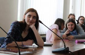 После отчета о проделанной работе за год, который подготовил председатель студсовета университета Никита Малашков, отчеты о работе студсоветов факультетов представили председатели и заместители советов юридического, филологического факультетов и факультета иностранных языков.