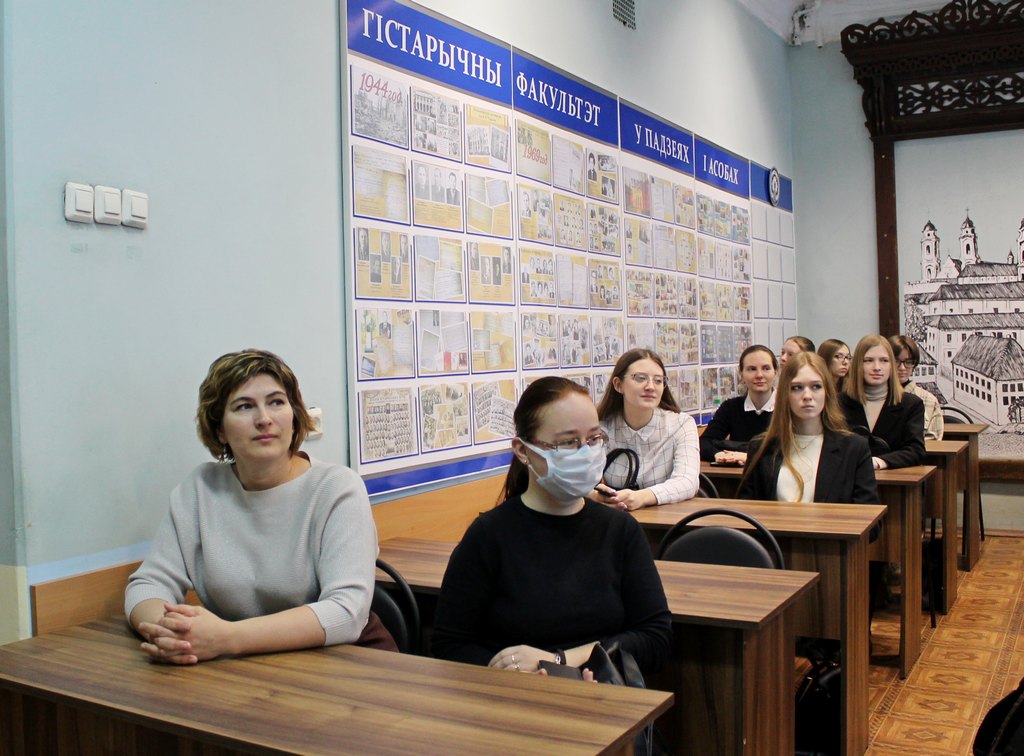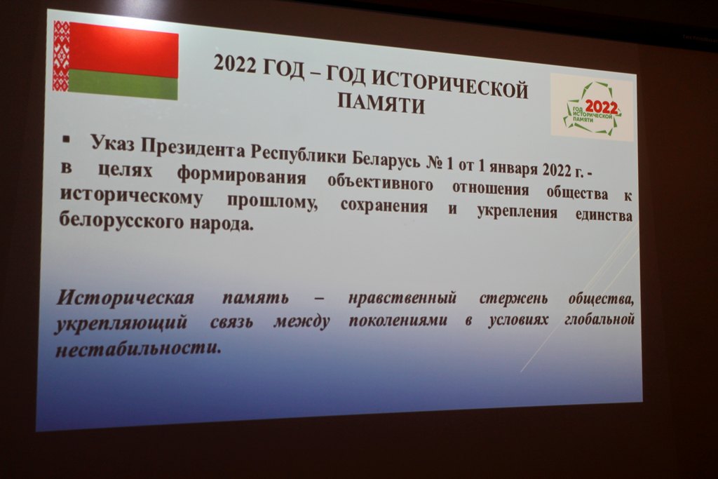 Во вступительной части информационного часа декан факультета Станислав Черепко рассказал о Годе исторической памяти и о его значении для формирования объективного отношения общества к историческому прошлому, сохранению единства белорусского общества и укреплению белорусского государства.
