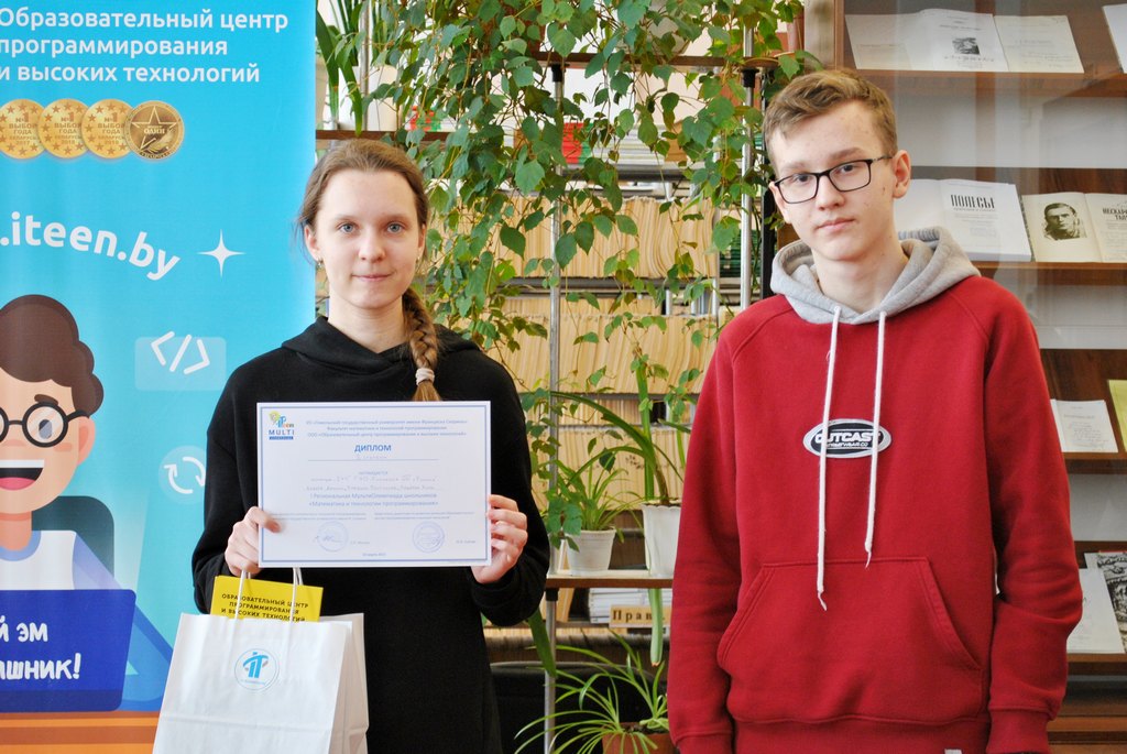 Все участники получили памятные подарки и сувениры от «ITeen Academy» и ИТ-компаний, сотрудничающих с факультетом математики и технологий программирования: ИООО «Эксадел», ИООО «EPAM Systems», ООО «Асист-лаб». Команда-победитель в общекомандном зачете стала обладателем сертификатов на бесплатное участие в летнем интенсиве (курс на выбор) от «ITeen Academy».