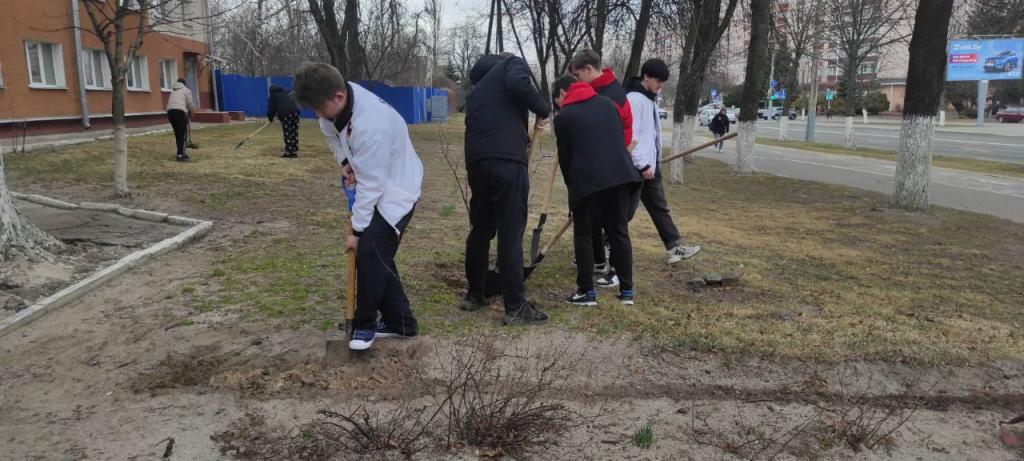 Трудовой десант наводил порядок на территориях, прилегающих к учебным корпусам и общежитиям. Немало усилий приложили и на мемориале «Партизанская криничка», где особо массово трудились гомельчане во главе с председателем облисполкома Иваном Крупко.