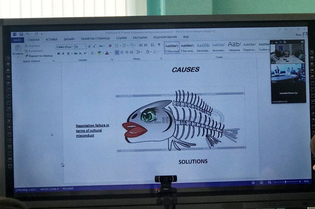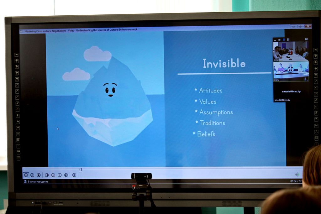 В интерактивном режиме при помощи творческих заданий и использования тематического видеосюжета студенты рассмотрели значение межкультурного общения и параметры эффективного межкультурного взаимодействия, необходимые компоненты деловых переговоров и делового этикета, особенности делового общения в межкультурном ракурсе.