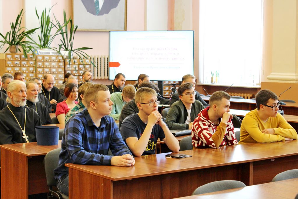 В ходе лекции слушатели узнали о жизни святой праведной Софии, ее духовном подвиге и о состоянии Православной Церкви в Речи Посполитой. Освещение и изучение биографии святой праведной Софии, княгини Слуцкой, с момента ее перехода в вечность и до настоящего времени носит противоречивый характер. В связи с тем, что личность наследной собственницы крупного православного Слуцкого княжества являлась ключом к реализации целого ряда политических, экономических планов и конфессиональных реформ на территории этого княжества, неадекватная информация о святой Софии стала появляться еще при ее жизни. В XIX в. вышло четыре художественных произведения на польском языке, где главной героиней являлась святая София. В русскоязычной печати целый ряд публикаций о ней увидел свет в конце XIX – начале ХХ вв. В 1984 г. была совершена канонизация святой Софии, и с 1993 и до настоящего времени интерес к ее биографии остается неизменно высоким.