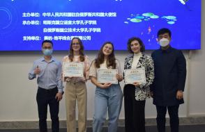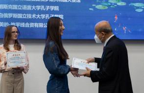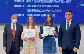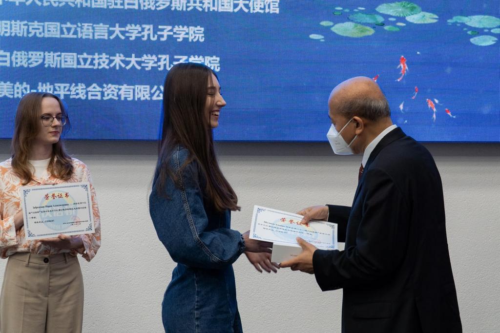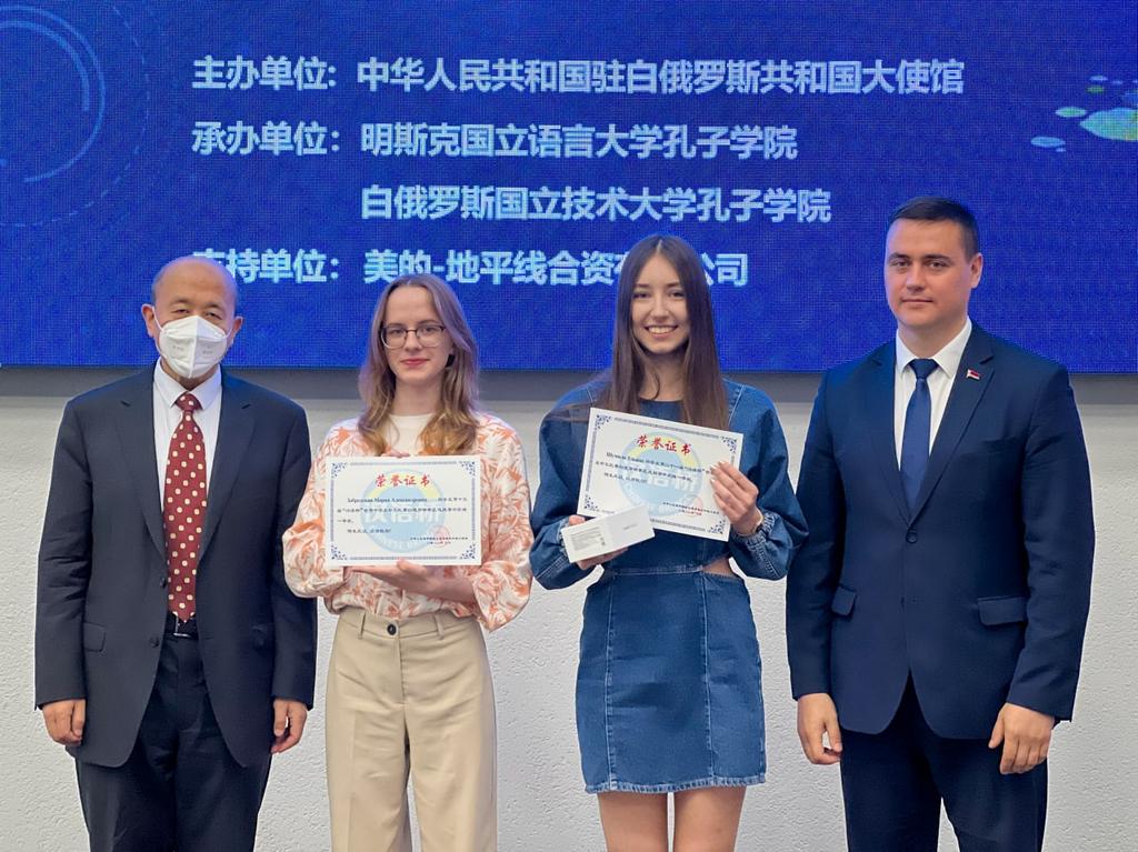 В номинации «За выдающиеся достижения» были награждены студентка факультета иностранных языков ГГУ имени Ф. Скорины Горбатовская Мария (преподаватель – Цзы Хэхэ) и Лыгач Мария, учащаяся Гомельского областного лицея (преподаватель – Лю Имин, аспирант факультета физики и информационных технологий).