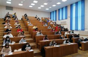 Тестирование проводится в просторных и светлых аудиториях, где рассадка участников производится «по одному» с соблюдением принципов социального дистанцирования (не менее 1,5 м.). Кроме того, для предотвращения массового скопления абитуриентов списки участников РТ с указанием корпуса и номера аудитории можно посмотреть на сайте университета gsu.by/SpisokRT в день проведения репетиционного тестирования с 900 (особенность организации РТ в ГГУ), можно также сразу пройти в аудиторию для тестирования, минуя гардероб.
