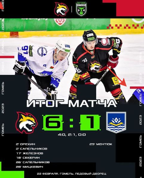 22 февраля в поединке с новополоцким «Химиком» Иван Секерин забросил шайбу, а Евгений Сапельников отличился дублем и был признан лучшим игроком матча. Фотоотчёт Популярные теги Спорт Теги Новости спорта одной строкой