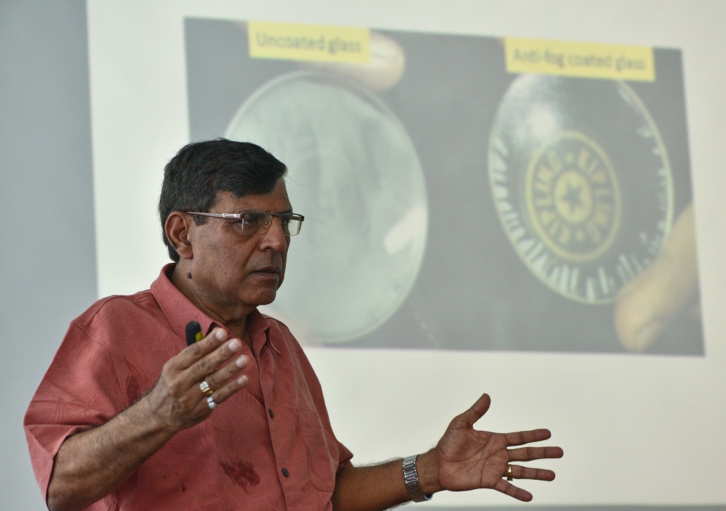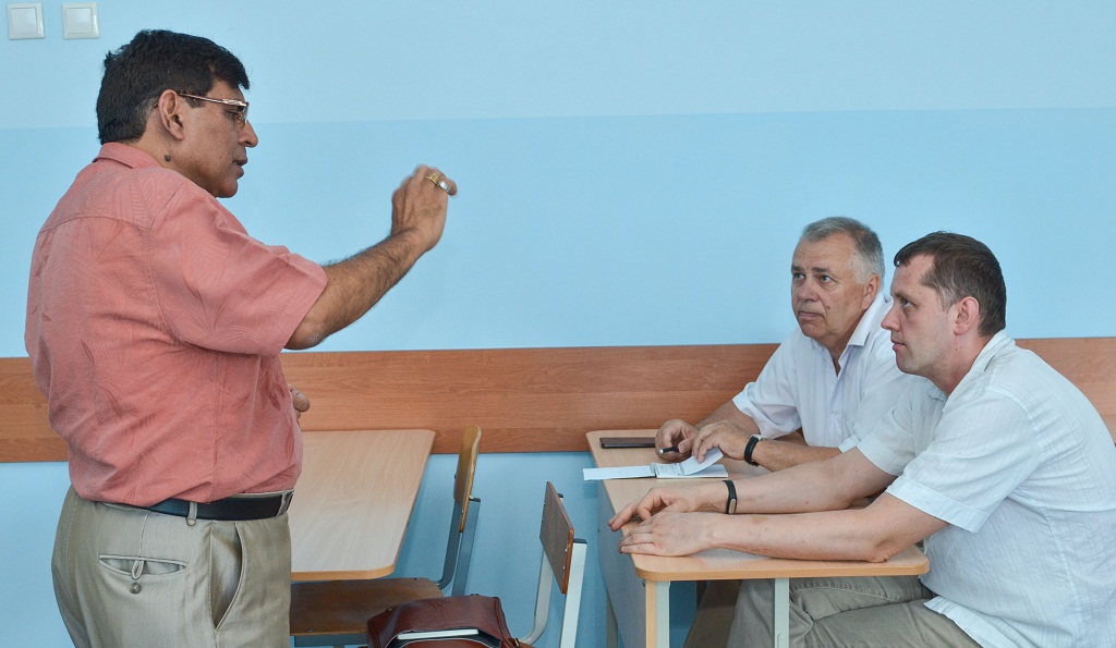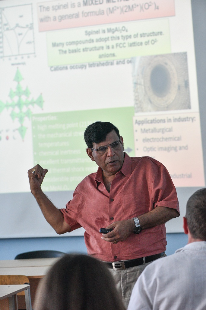 Гость Гомельского госуниверситета — профессор Индийского технологического института Ананда Ханна, прибывший в вуз с деловым визитом, прочел ряд лекций для преподавателей и сотрудников факультета физики и информационных технологий ГГУ. Их тематика касалась специфики прозрачных покрытий для оптики, свойств покрытий на основе графена. Лекции ученого вызвали живой интерес аудитории, активно откликнувшейся на обсуждение общих вопросов исследования.