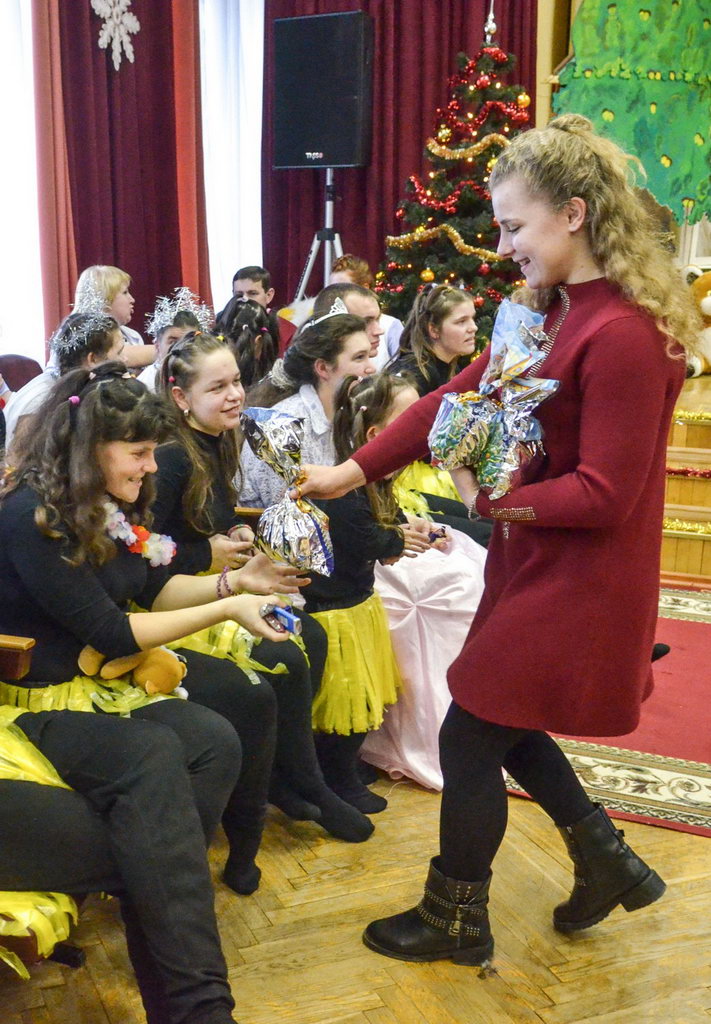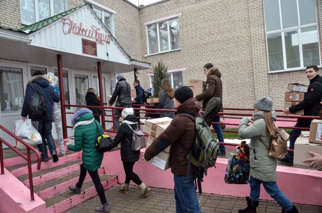 Воспитанники интерната получили замечательные подарки и от коллективов студентов, преподавателей, сотрудников факультета физической культуры, факультета математики и технологий программирования, кафедры белорусской культуры и фольклористики, группы БИ-12, профкома студентов, библиотеки, выпускников исторического факультета – членов волонтерского общества «Друг детей», коллектива учебного корпуса №1. Несказанную радость у детей вызвал подаренный спортивный инвентарь и спортивная форма от футбольного клуба «Спутник» и Гомельской областной федерации футбола, хоккейного клуба «Гомель», ООО «Спортивные товары» и одного из старейших преподавателей факультета физической культуры Макаревича Владимира Владимировича.