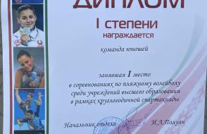 5 июня на спортивной базе стадиона «Луч» прошли соревнования по пляжному волейболу среди учреждений высшего образования Гомеля в рамках круглогодичной спартакиады. Участие в соревнованиях приняли 8 женских и мужских команд. Сборная нашего университета заняла первые места и в мужских, и женских состязаниях.