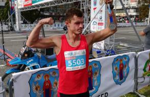 На пятом километре организаторы свели дистанции на 5 км и 10 км на одну дорогу. На дистанции 5 км участники движутся шагом, некоторые медленным бегом. Для тех, у кого скорость высокая, это проблема. И мне приходиться оббегать «пешеходов». Перед Монументом Победы «пятёрочники» поворачивают, а мы, кто на 10 км, бежим прямо. Впереди самая тяжелая горка. Дальше поворот со Сторожовской на проспект Машерова, опять в толпе «пятёрочников». Пока лавирую в толпе, теряю скорость. Финиш из последних сил! На шею вешают медаль, вручают бутылку с водой. Мое время 42.30. На минуту лучше прошлогоднего результата.