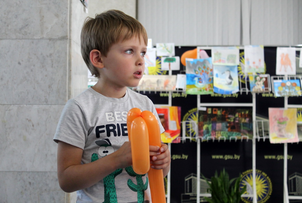 Инициировала детский праздник «Вясёлка» общественная организация «Совет женщин» университета в лице ее председателя Татьяны Каморниковой. На целый час выставочный зал главного корпуса превратился в веселую детскую площадку, на которой собралось больше 30 детей в возрасте от 5 до 12 лет, чтобы вместе поиграть, повеселиться и здорово пошуметь – ведь только так можно обуздать энергию, бьющую через край неутомимых детских сердец.