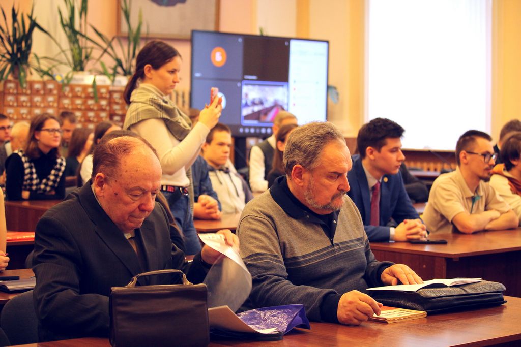 На пленарном заседании прозвучали доклады почетного профессора ГГУ, доктора философских наук, профессора В.Н. Калмыкова, доктора исторических наук, профессора Н.Н. Мезги, а также кандидата политических наук, доцента Д.С. Плотникова (Пермь). Последний доклад был посвящен трактовкам событий Второй мировой войны в странах постсоветского пространства и поэтому вызвал особый интерес.