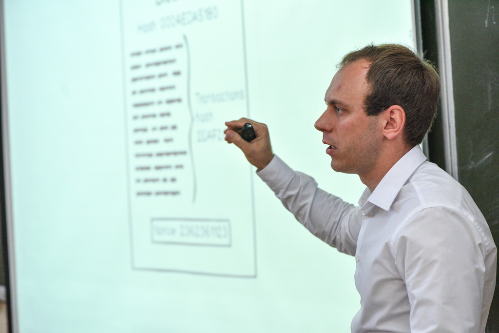 Один из таких семинаров по проекту «МИР цифрового будущего» прошел 7 июня на базе факультета математики и технологий программирования ГГУ имени Ф. Скорины. О технологии блокчейн слушателям рассказал старший преподаватель кафедры фундаментальной и прикладной математики, ведущий инженер-программист компании «Эксадел» Евгений Мысловец.