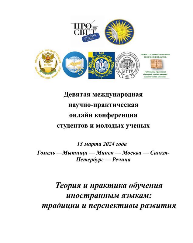 13 марта 2024 года студенты и преподаватели факультета иностранных языков приняли участие в IX Международной научно-практической онлайн-конференции студентов и молодых ученых «Теория и практика обучения иностранным языкам: традиции и перспективы развития», учредителями которой выступают факультет романо-германских языков Государственного университета просвещения (г. Москва, Российская Федерация, https://guppros.ru/ru) и факультет иностранных языков Гомельского государственного университета имени Франциска Скорины (г. Гомель, Беларусь). Со стороны Российской Федерации в число участников вошли студенты, магистранты и аспиранты Государственного университета просвещения, Московского государственного лингвистического университета, Московского педагогического государственного университета и Российского государственного педагогического университета имени А. И. Герцена. Беларусь была представлена учащимися Речицкого государственного педагогического колледжа, студентами и магистрантами Гомельского государственного университета имени Франциска Скорины и Минского государственного лингвистического университета.