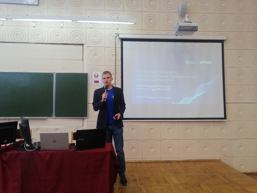В рамках традиционной школы для молодых ученых с научным докладом «Исследования и разработки в области прикладной электродинамики и антенной техники в ИТМО» выступил приглашенный ученый Глыбовский Станислав Борисович, д-р. физ.-мат. наук, ведущий научный сотрудник Физического факультета университета ИТМО (Санкт-Петербург, Россия).
