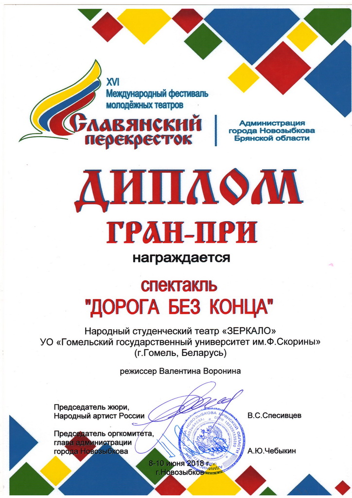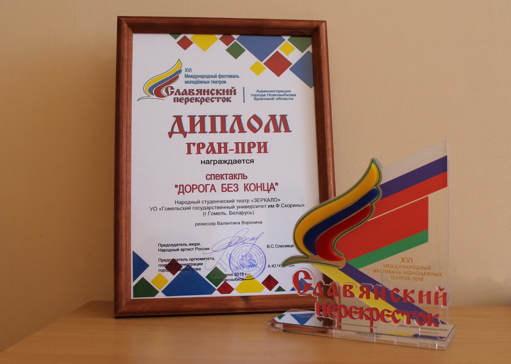 Члены жюри высоко оценили творческий показ народного студенческого театра «Зеркало» и вручили ему высшую награду - Гран-при Международного фестиваля молодежных театров «Славянский перекресток».