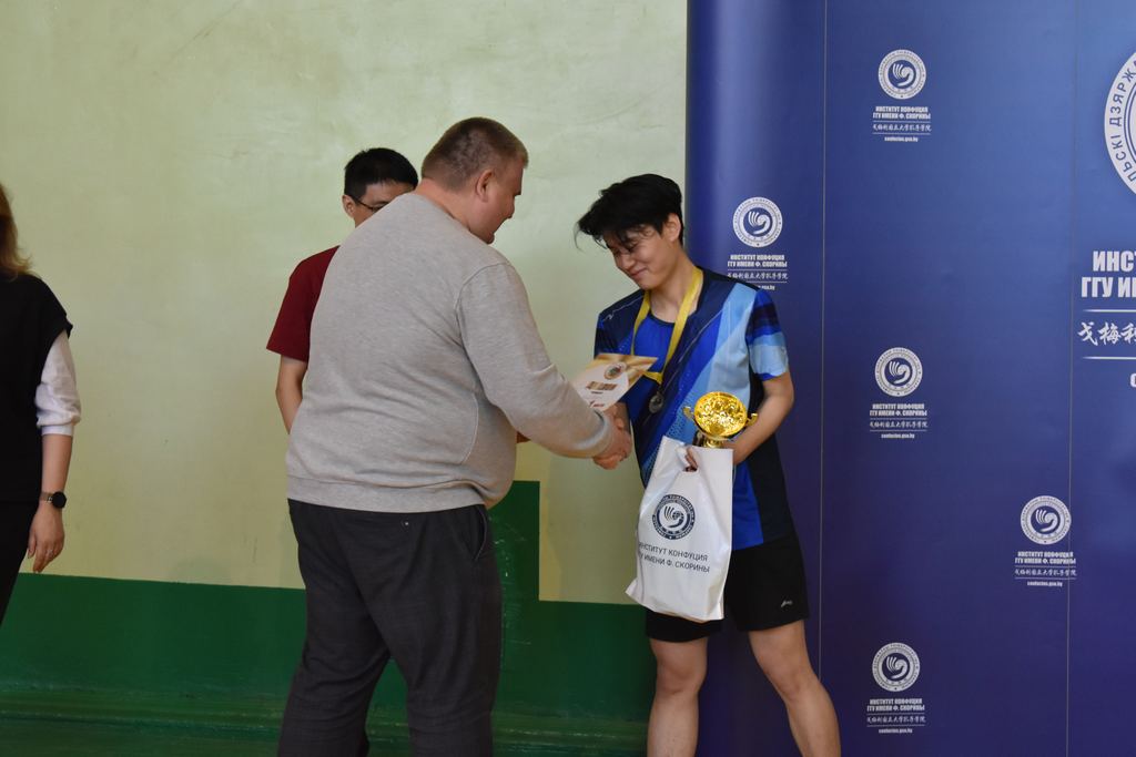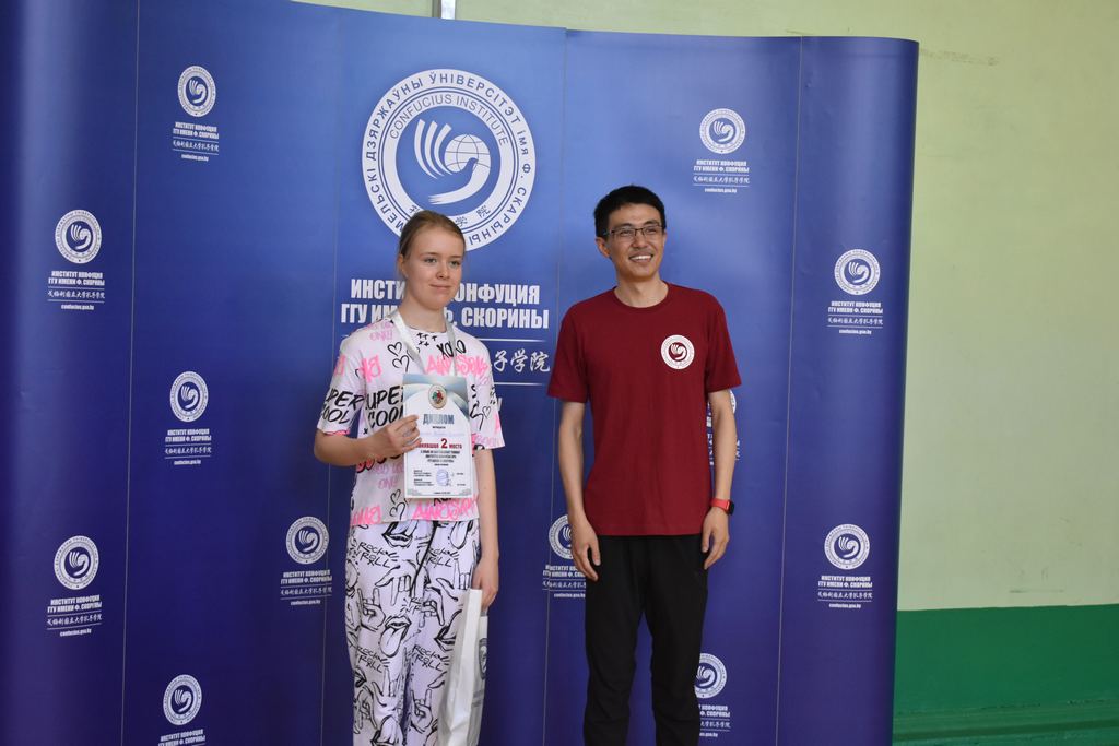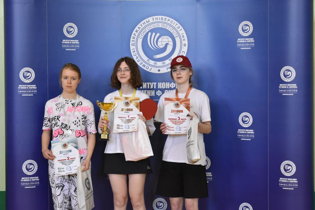 Обладателями кубков Института Конфуция при ГГУ имени Скорины и дипломов за 1-е место стали студент филологического факультета Цуй Ляньюй (филологический факультет) и Анастасия Денискова (слушатель Института Конфуция); дипломы 2-й ступени были вручены слушателям Института Конфуция Дмитрию Прокопенко и Богдане Сороковой; дипломами 3-й  ступени награждены студенты филологического факультета Илья Гнидин и Ксения Мека. Все финалисты теннисного турнира получили сувениры, подготовленные Институтом Конфуция.