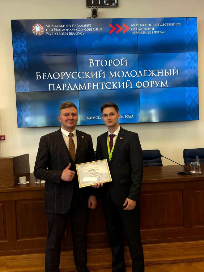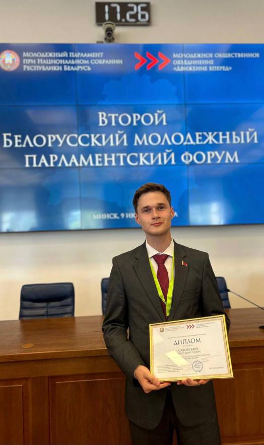 Выпускник ГГУ имени Ф.Скорины Сергей Дмитриевич Саковский одержал блистательную победу на Национальном молодежном конкурсе «Инициатива лидера», представив свой инновационный проект платформы «ГРАНТЫ.БЕЛ». Данный конкурс, проходивший в рамках Второго Белорусского молодежного парламентского форума, собрал более 160 участников, которые голосовали за проекты, направленные на поддержку разноплановых инициатив молодых лидеров Беларуси.